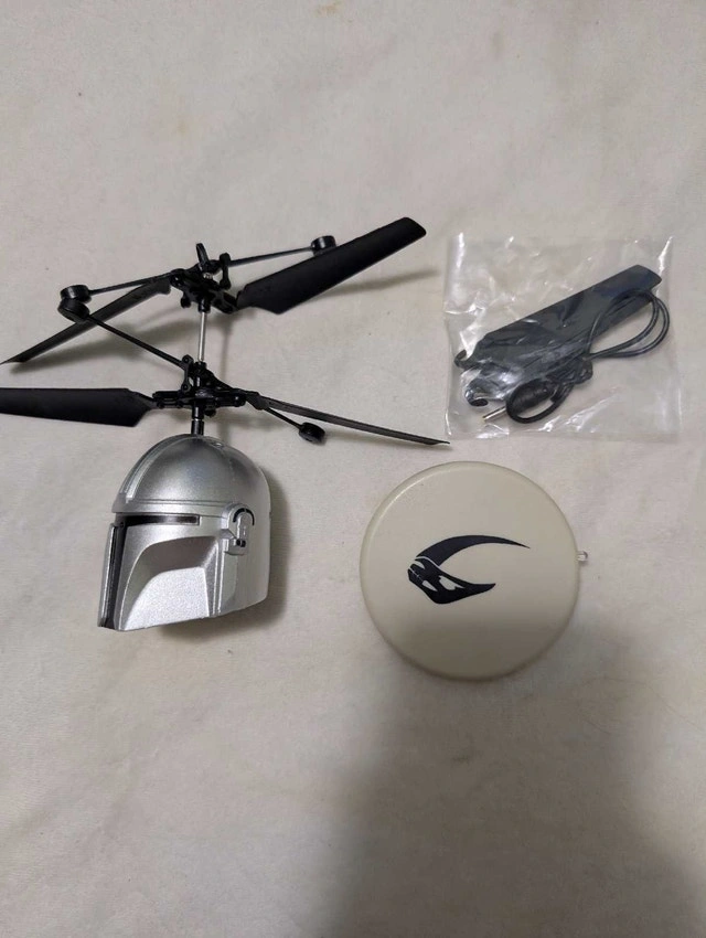 Get ready to soar through the skies with this Star Wars Mandalorian motion-sensing helicopter, featuring a sleek design and easy, hand-controlled flight! This set also includes a Kuiil action figure. This helicopter is in excellent condition and is hours of fun for Star Wars fans and collectors alike. Features: * Motion-sensing technology * Officially licensed Star Wars merchandise * Includes charging cable