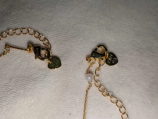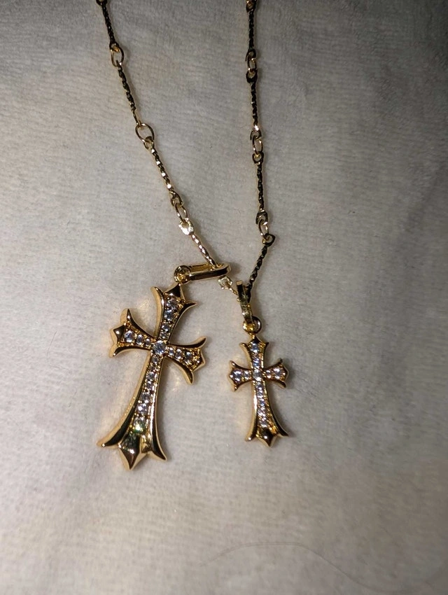 Elevate your style with these pre-loved necklaces, each boasting its unique charm and character. The first is a cross necklace, complete with embedded crystals, which catch the light beautifully. The second is a pearl necklace. They are both very cute. Given the quality, I've priced these slightly above average! If the ad is up, yes, it is still available! Comes with gift box could be used as Christmas gift.