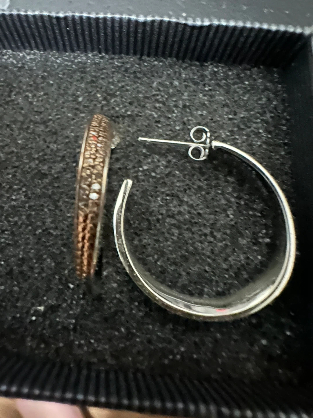 Buy & SellSterling Silver 925 Hoop Earrings with diamondsSterling Silver 925 Hoop Earrings with diamonds$78Sterling Selling 925 with diamonds a pair of silver hoop earrings. They have a unique design.ConditionNewWHERE TO MEETCheck LocationView MapSELLERverifiedMaryVaughan35633 reviews0 chats·0 favorites·16 views