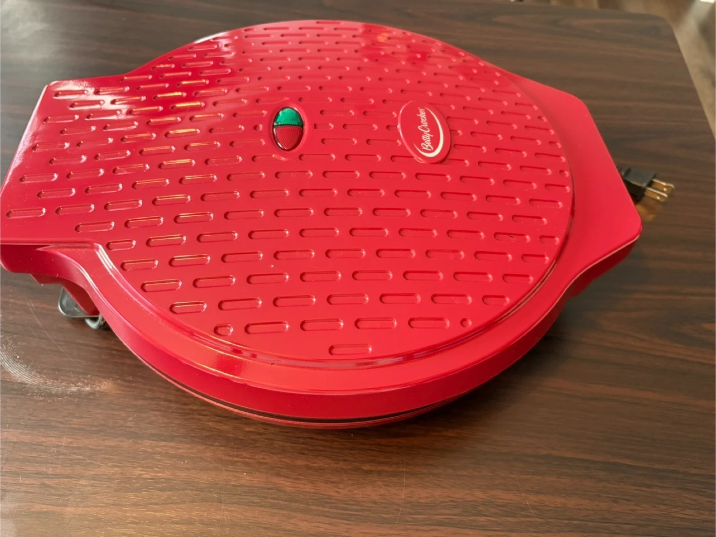 Selling a Betty Crocker pizza maker in great condition! It's perfect to cook delicious pizza at home. The red colour adds a fun touch to your kitchen. Get ready to enjoy some tasty treats!