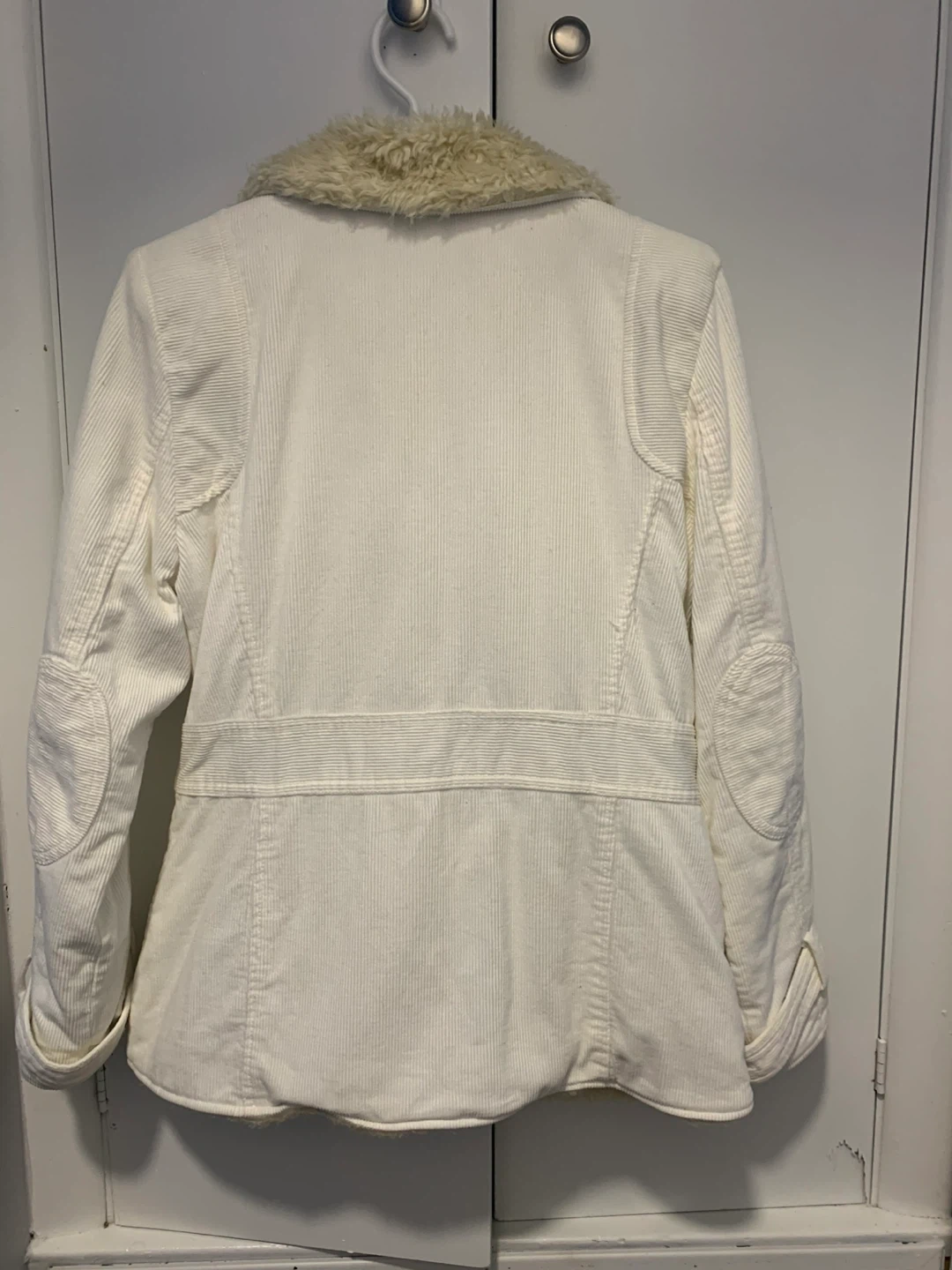 Esprit White Corduroy Jacket with Faux Fur Collar