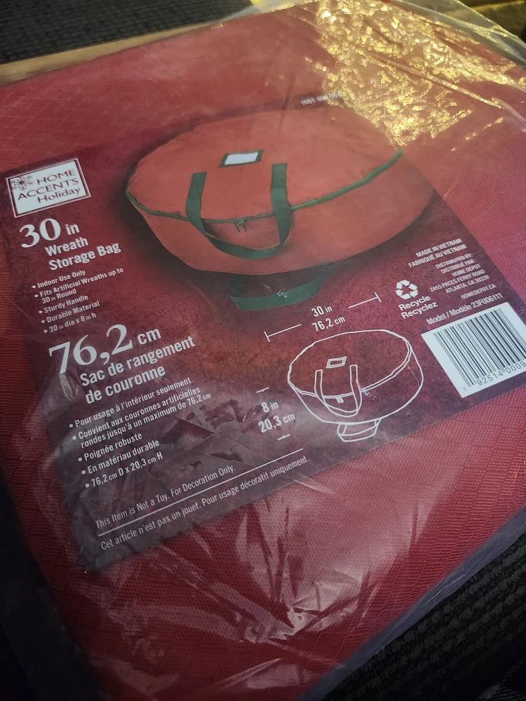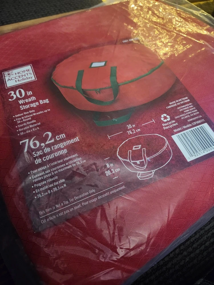 Selling a brand new Home Accents Holiday 30-inch wreath storage bag! It also features a sturdy handle and durable material for easy carrying and storage
