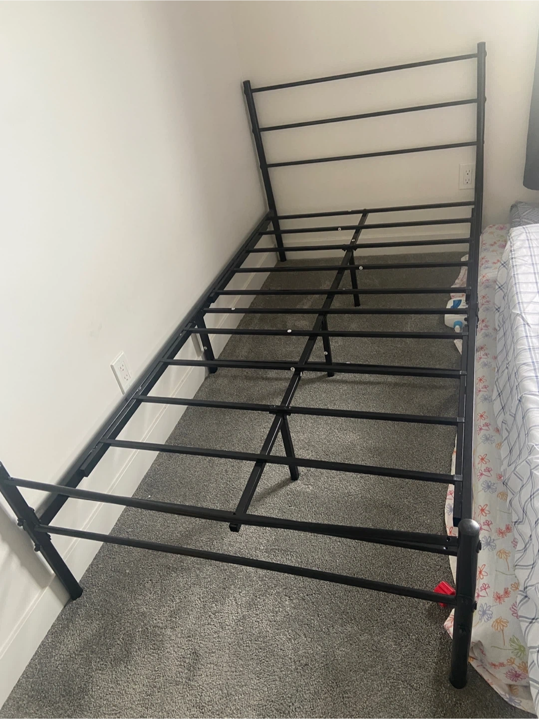 Buy & SellBlack Metal Bed Frame - Twin SizeBlack Metal Bed Frame - Twin Size$105Selling a sturdy black metal bed frame, perfect for a twin-size mattress. It's in great shape and ready to use!ConditionLike new0 chats·1 favorites·7 viewsSELLERverifiedHumaira RiazNortheast Calgary650 reviewsWHERE TO MEETT3J 5R8 Homestead
