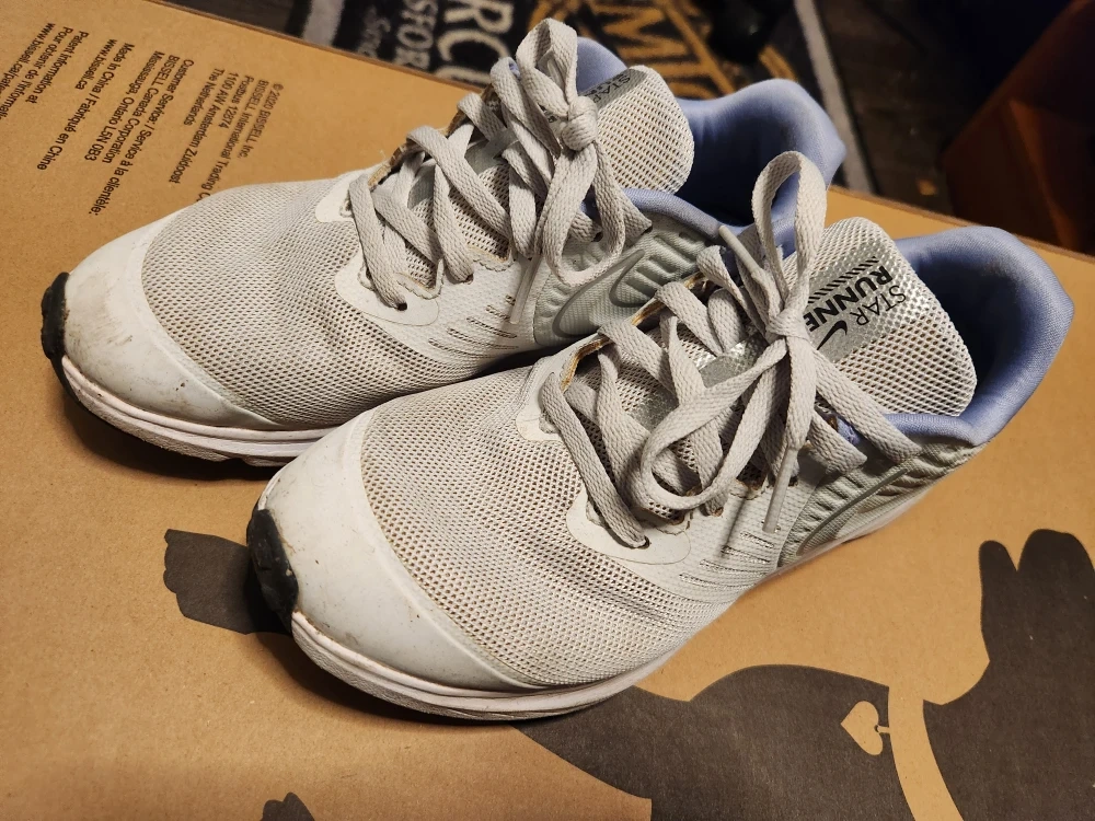 Selling a pair of Nike Star Runner kids' running shoes in size 4Y. They show some signs of wear, as you can see in the photos, but still have lots of life left! Great for running around or everyday wear.