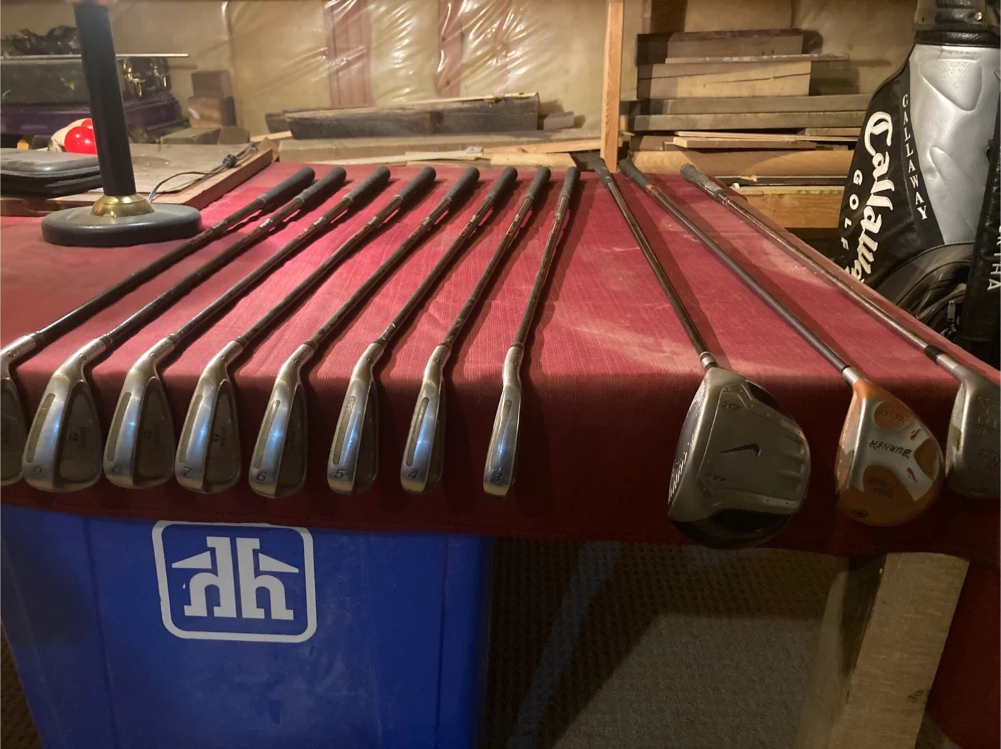 Selling a Callaway golf bag along with a set of assorted golf clubs. Everything is in good condition and ready for the course. The set includes a mix of clubs from Nike, TaylorMade, and other brands, offering a variety of options for your game. Great for anyone looking to upgrade their equipment or get started with a complete set!