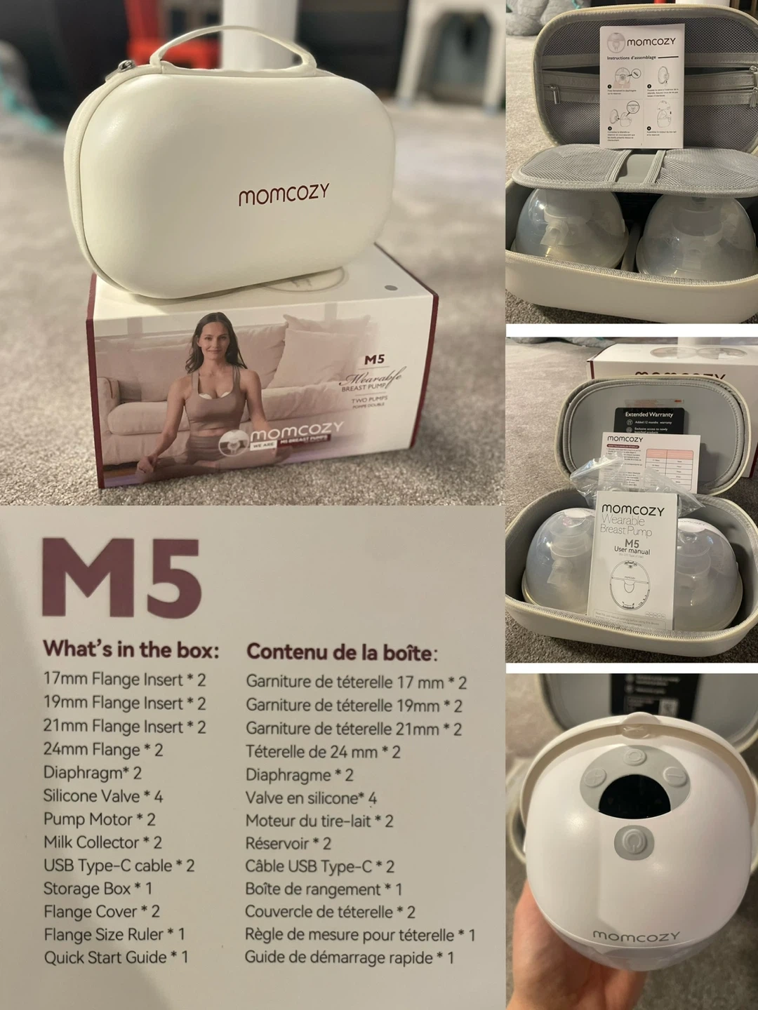 Selling a Momcozy M5 Wearable Breast Pump in excellent condition! It comes with all the original components, including: