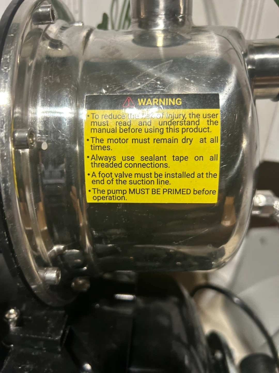 Selling a DEKO shallow well jet pump, model DKGP1200LS1-US. It's a 1.6HP pump with a maximum flow of 1320 GPH. It operates at 120V~60Hz and 10A, with a maximum suction height of 26 feet and a maximum lift of 164 feet