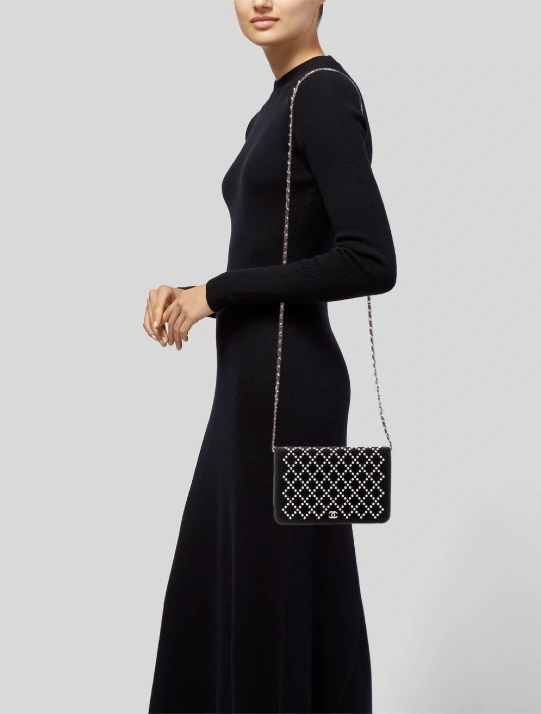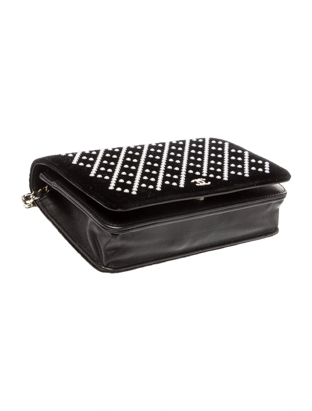 Chanel Velvet Pearl Embellished Wallet on Chain