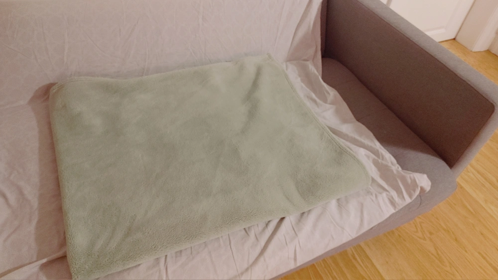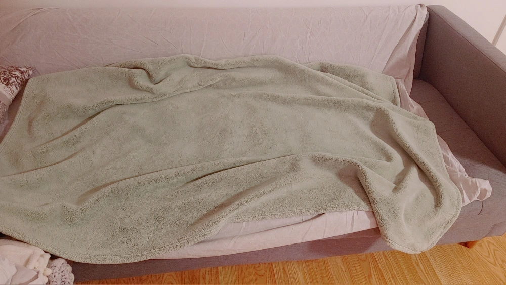 Selling a super soft and cozy throw blanket! It's a lovely light green colour and would be perfect for snuggling up on the couch. It's in good condition and ready for a new home