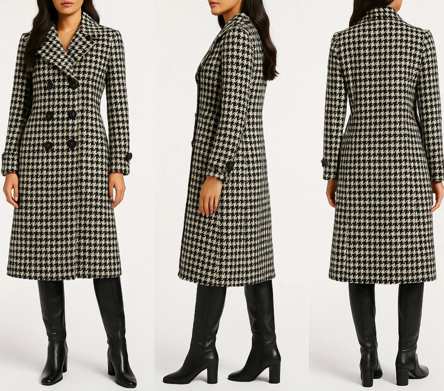 WOS Houndstooth Double Breasted Stylish Coat - Fall/Winter