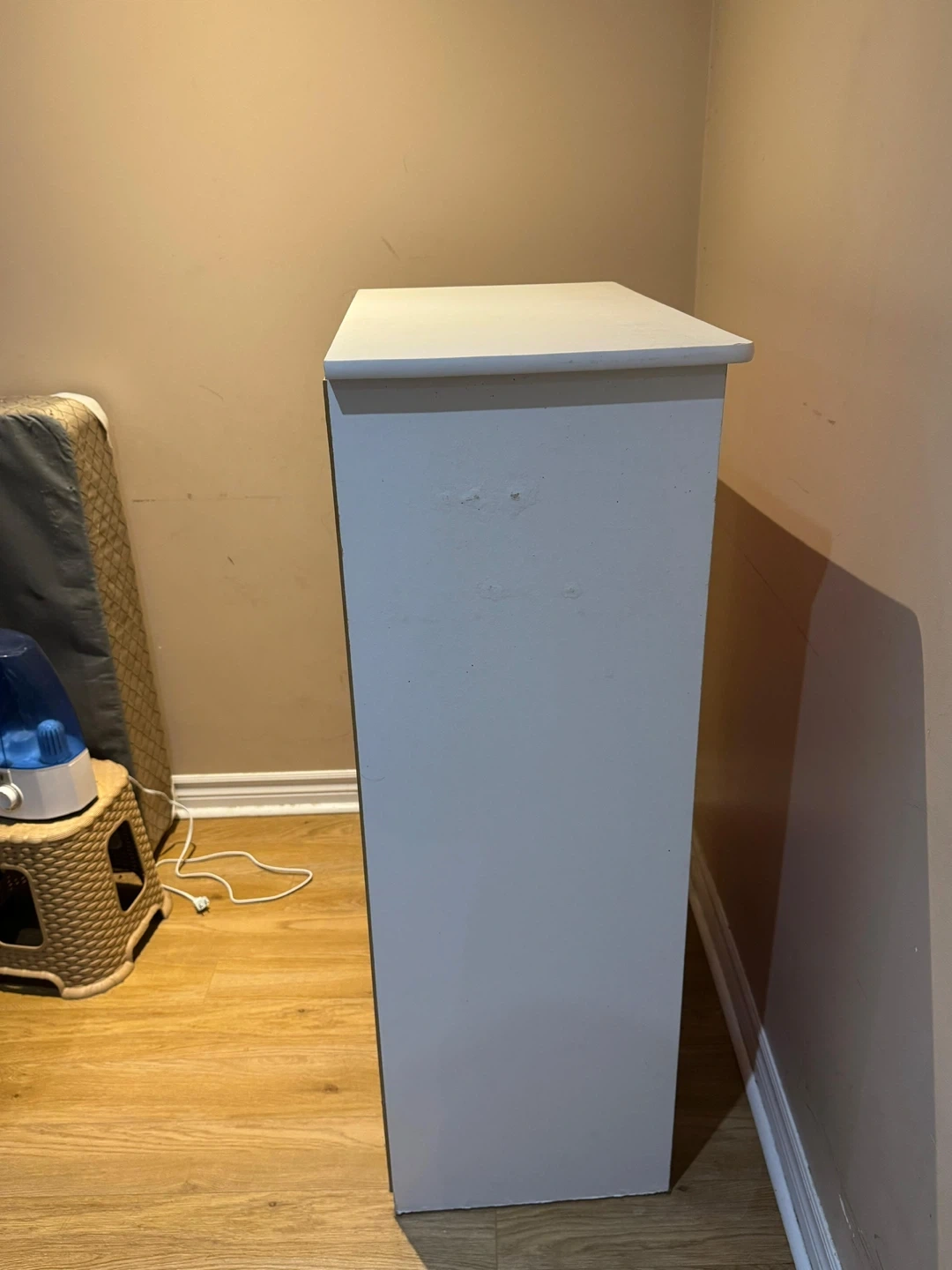 Sturdy wooden 5-drawer chest in pink/white. All drawers slide smoothly and have strong knobs. Perfect for bedroom, kids’ room, or extra storage.