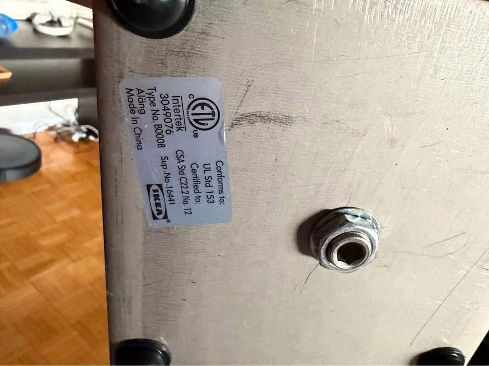 IKEA Aläng series lamps featured a brushed metal finish and a woven fabric shade. The set includes both table lamps and a floor lamp.