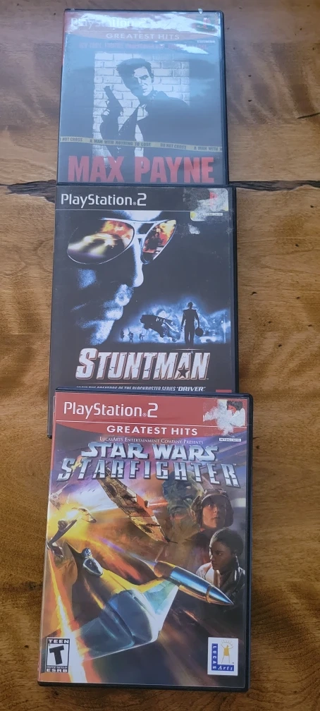 Selling three PlayStation 2 games: Stuntman, Max Payne, and Star Wars Starfighter. All games are in used but excellent condition. 15 for all 3.