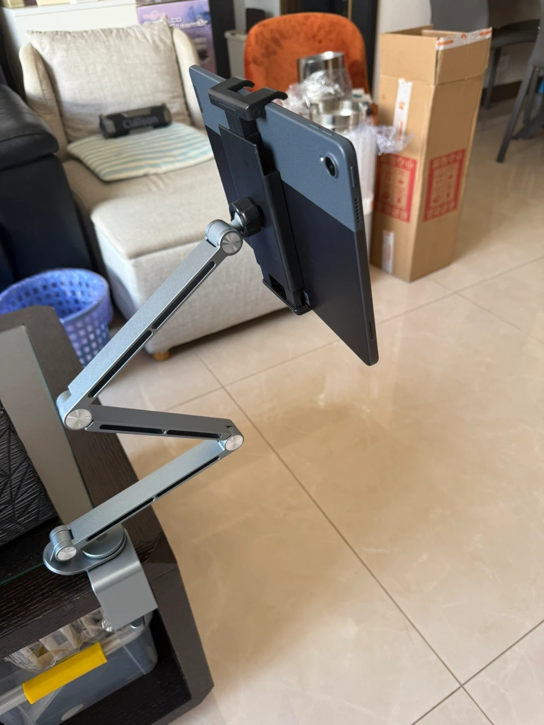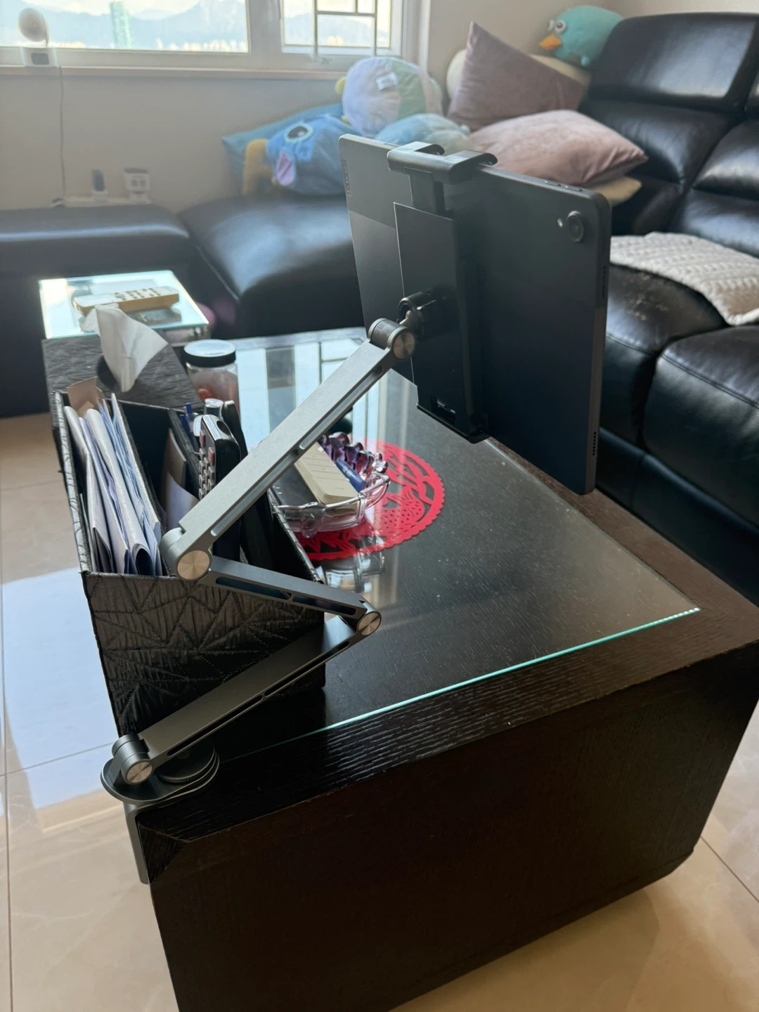 Selling an adjustable tablet or iPad iPhone stand. It's in great condition and ready to use! It can be easily adjusted to different angles for comfortable viewing.