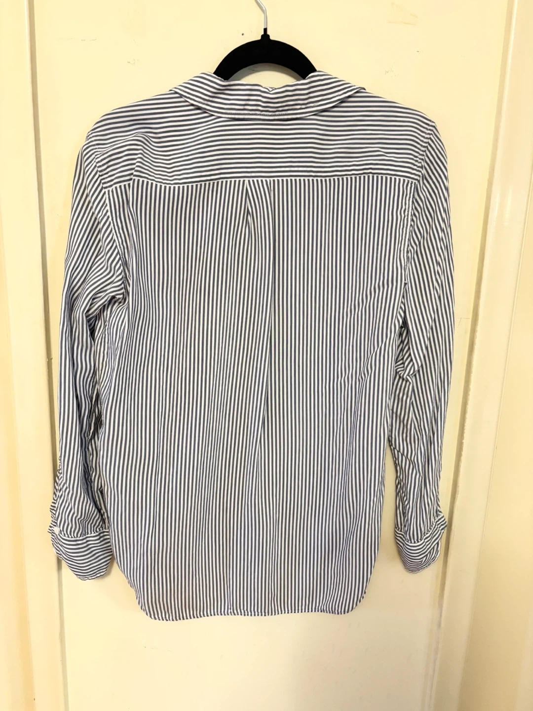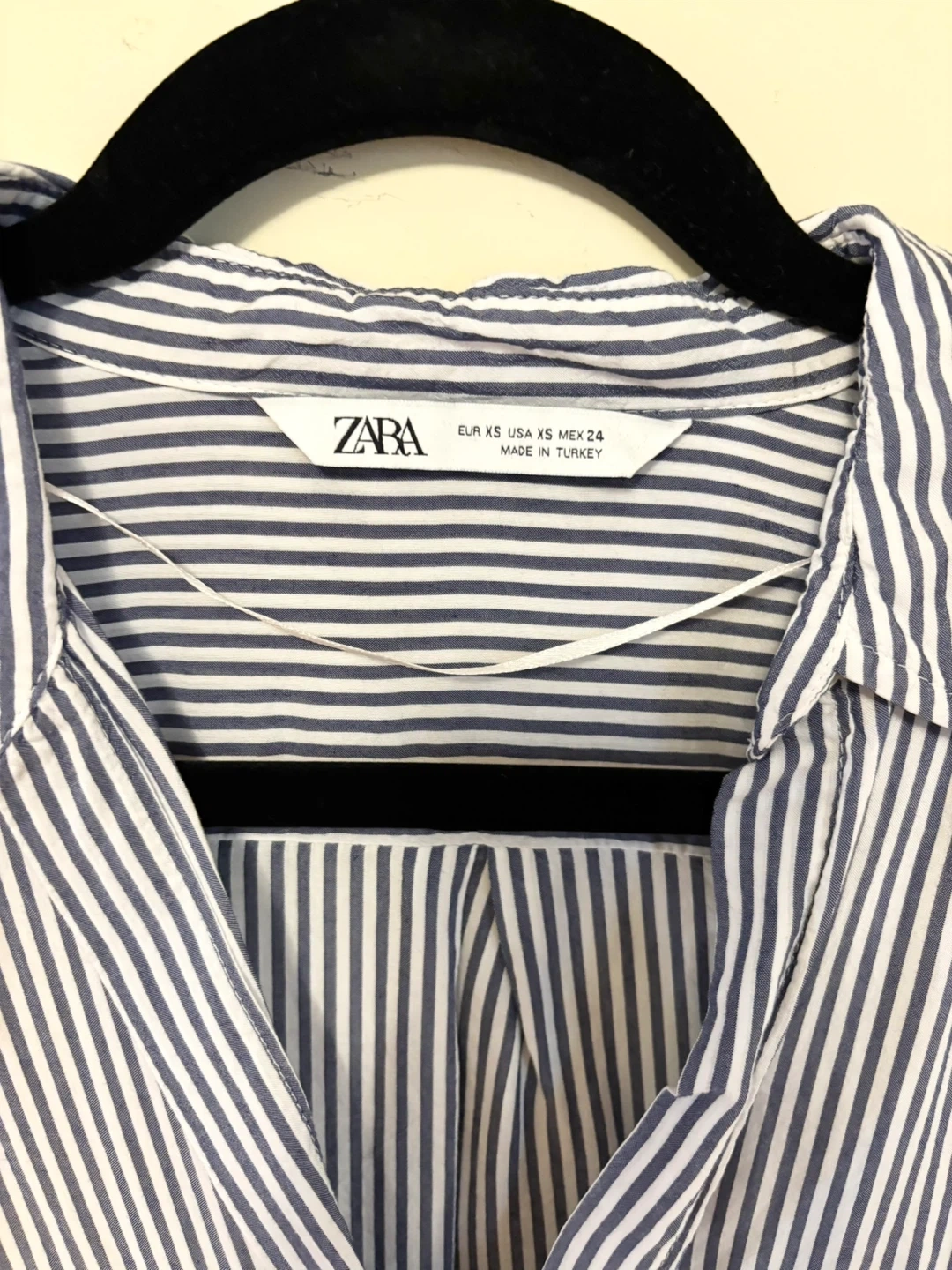 Here's a cute Zara blouse in a striped pattern! It's a size XS and made in Turkey. Perfect for a casual or work outfit!