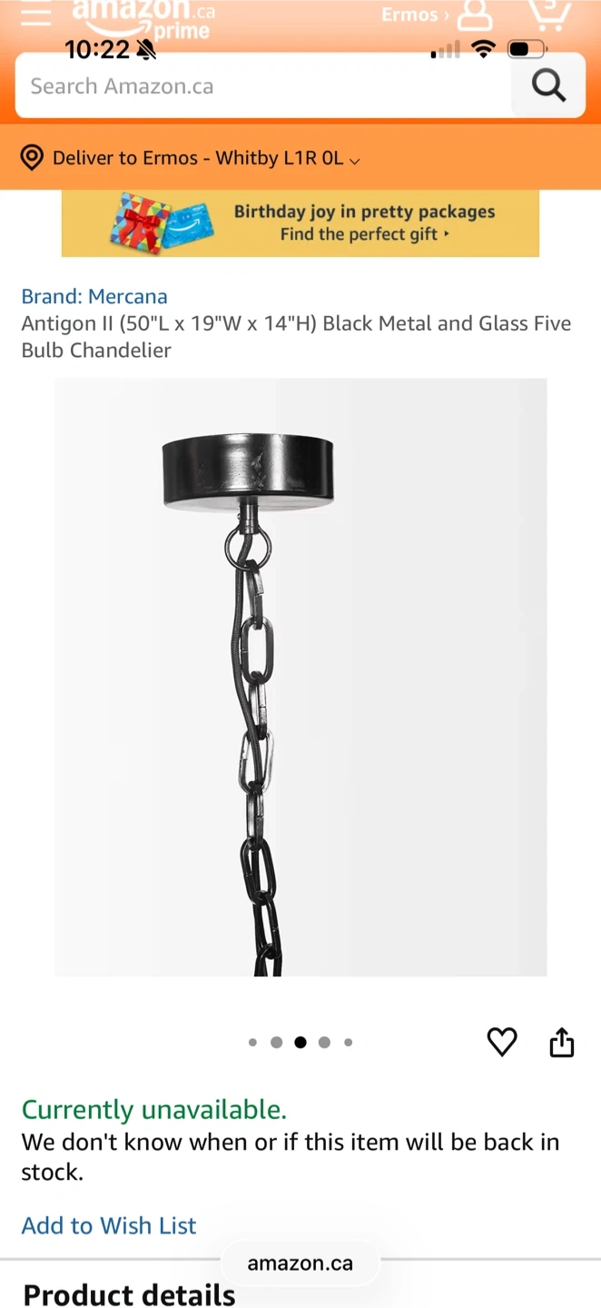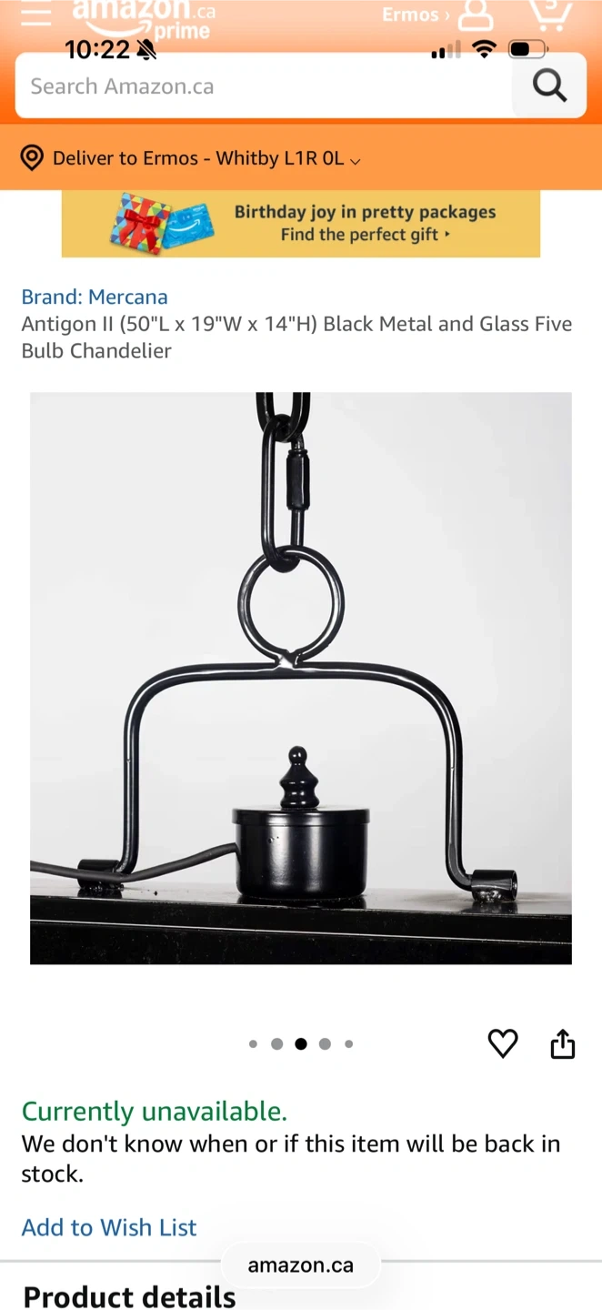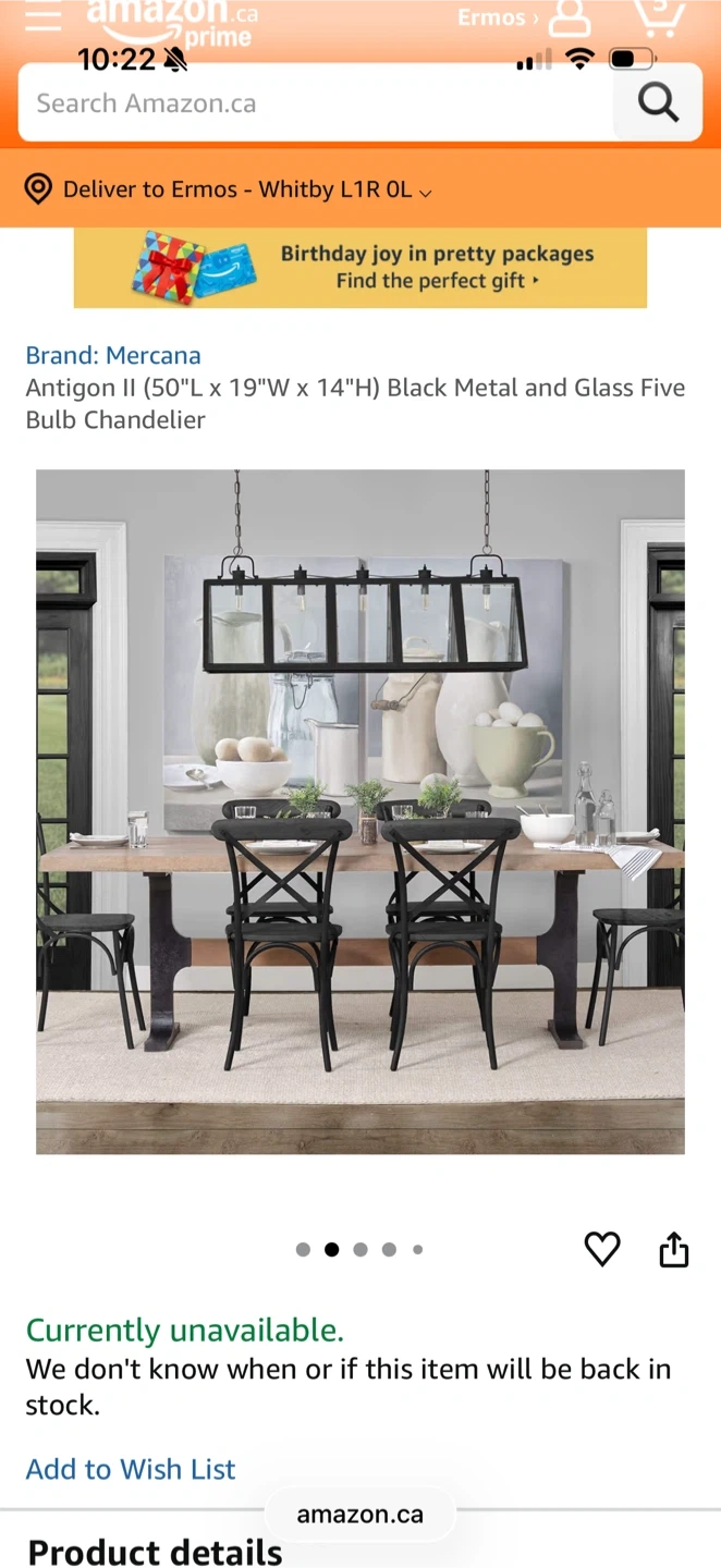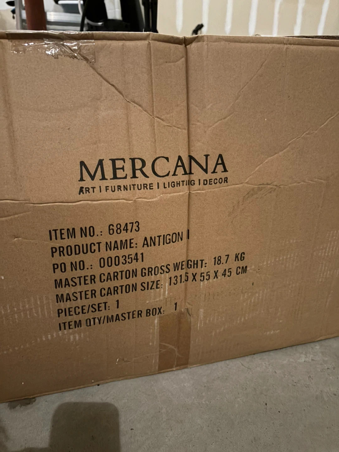 Selling a brand new Mercana Antigon I chandelier, still in its original packaging! The box includes all components and accessories. The master carton size is 131.5 x 55 x 45 cm. It's a beautiful black metal and glass five-bulb chandelier, ready to brighten up your space