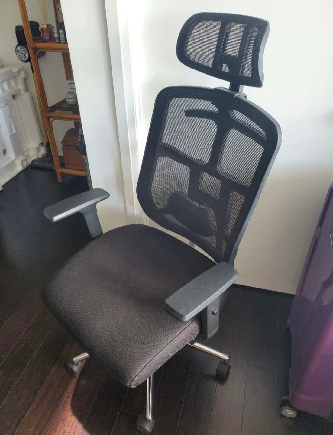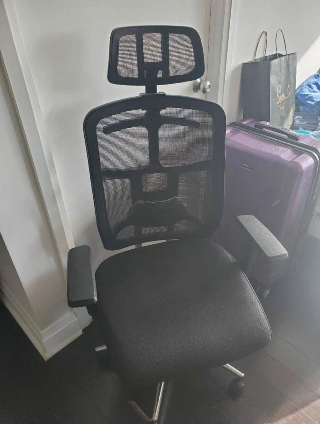 Selling a comfortable ergonomic office chair in black. It features a mesh back for breathability and good support for long hours at your desk. Great for home or office use!