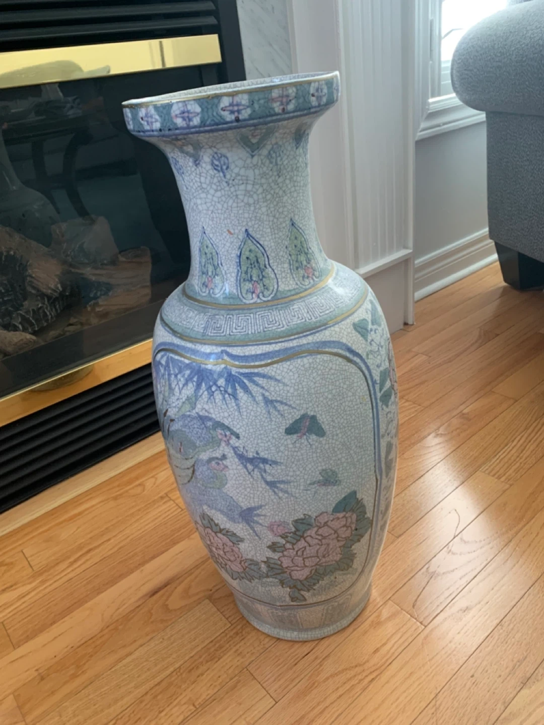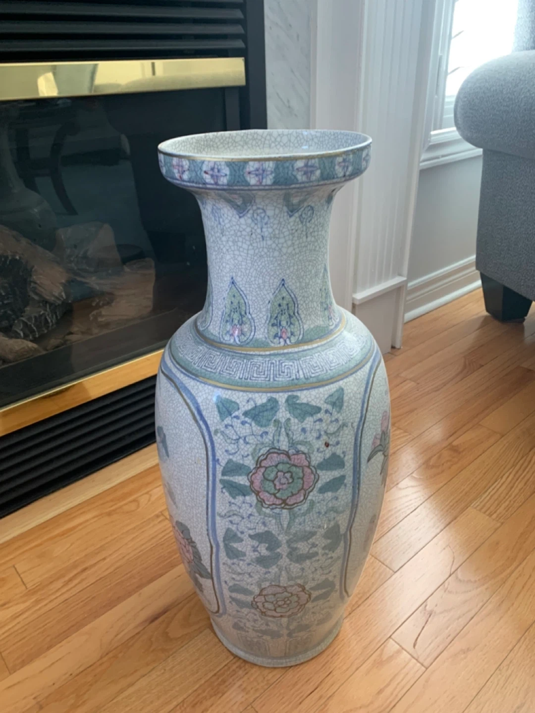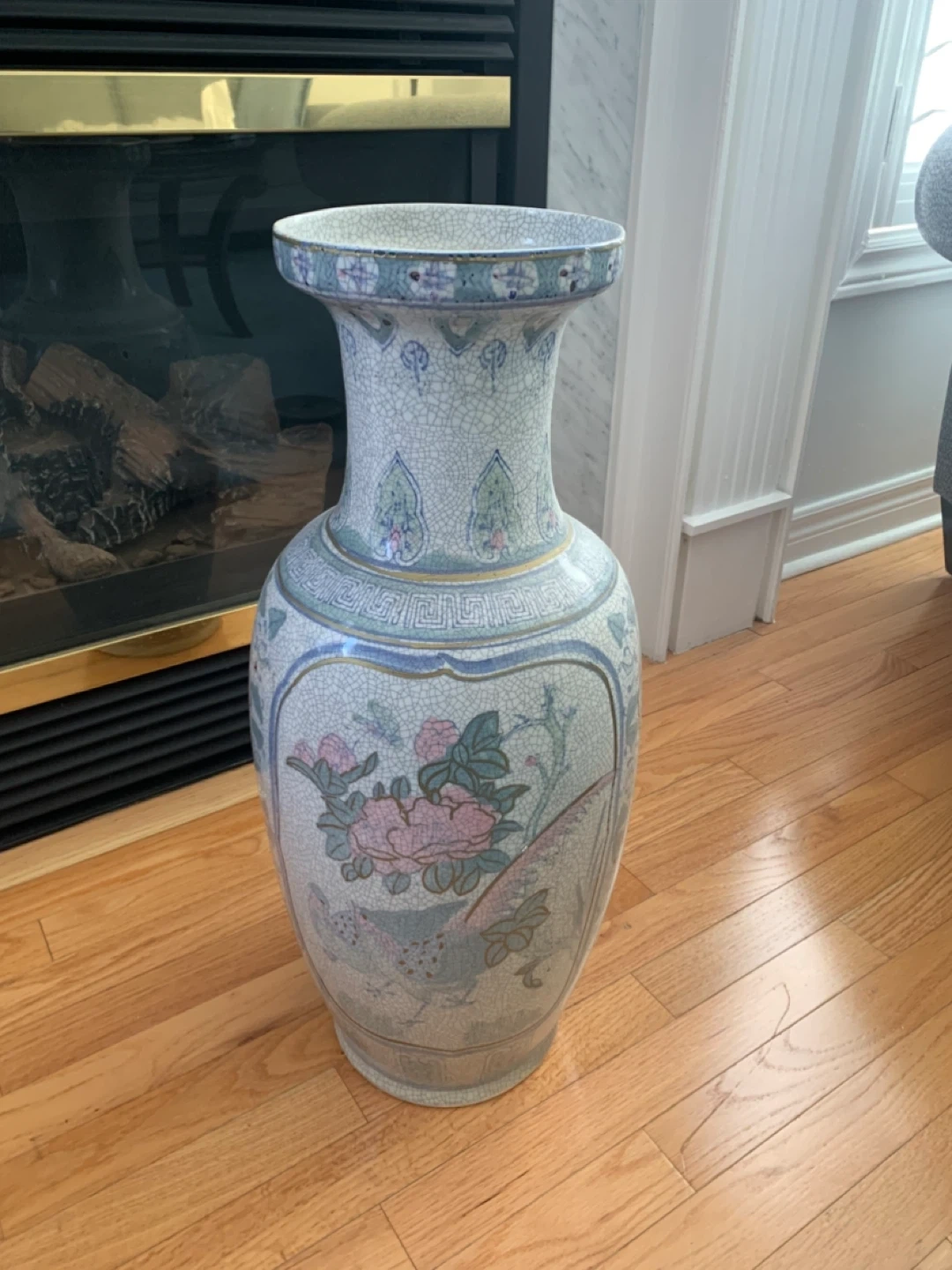 Here's a beautiful decorative vase with a unique floral design! It would look great in any room as a lovely accent piece