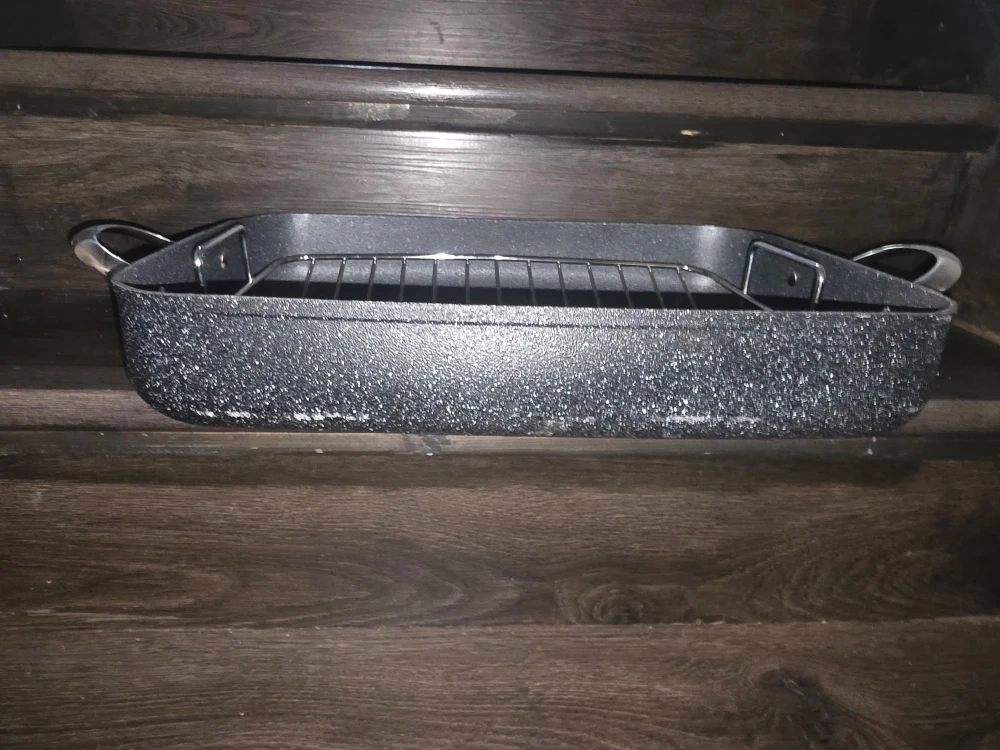 Selling a roasting pan, complete with a rack. It's in great condition and ready for your next roast! Perfect for cooking up a delicious meal for the whole family. This roasting pan has only been used once.