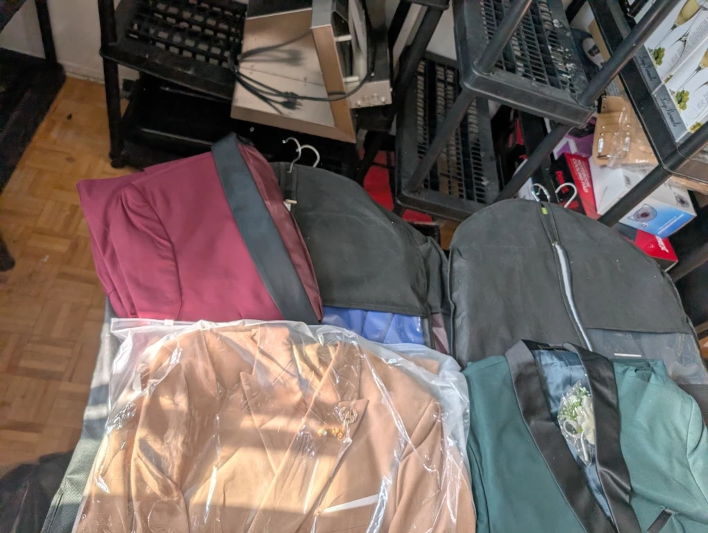 Selling a collection of 3 piece, 2 piece tuxedo suits, and dress jackets ( most in garment bag or original packaging)
