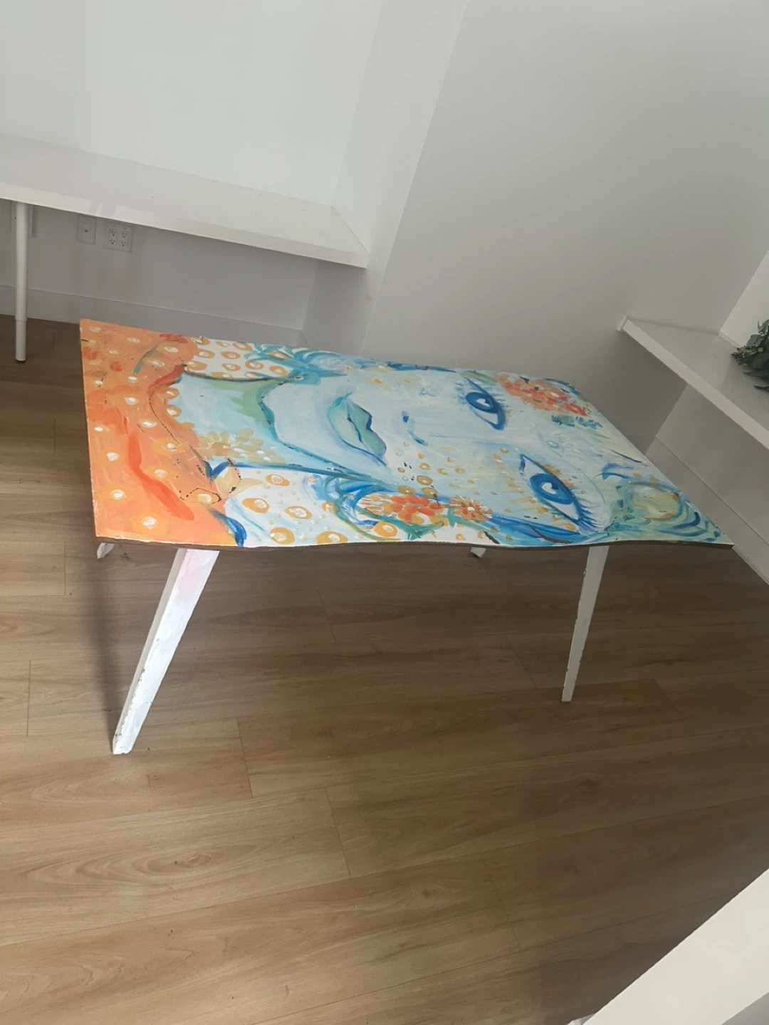 This is a one-of-a-kind, hand-painted 6 sit dining table! It features a unique design with vibrant colours and a whimsical style. Perfect for adding a touch of artistry to your living space. It's sturdy and in good condition, ready to be a conversation starter in your home