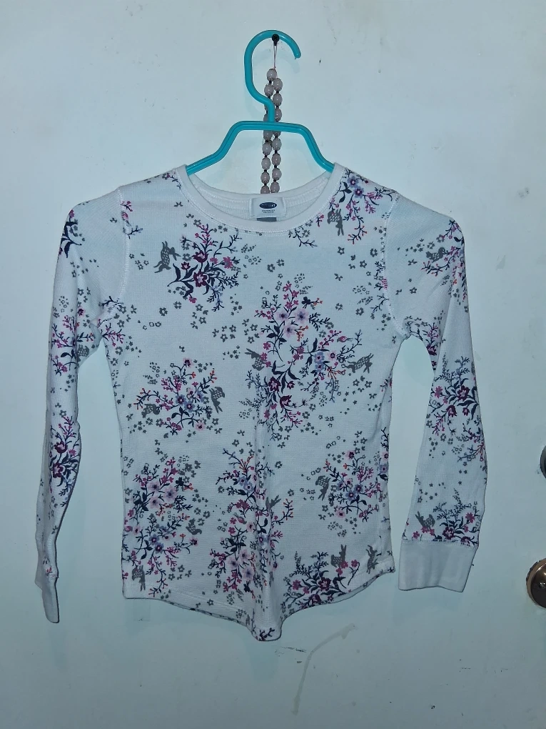 Selling a cute Old Navy long-sleeved top for girls! It's a size L/G (10-12) and features a pretty floral pattern all over. Perfect for layering or wearing on its own!