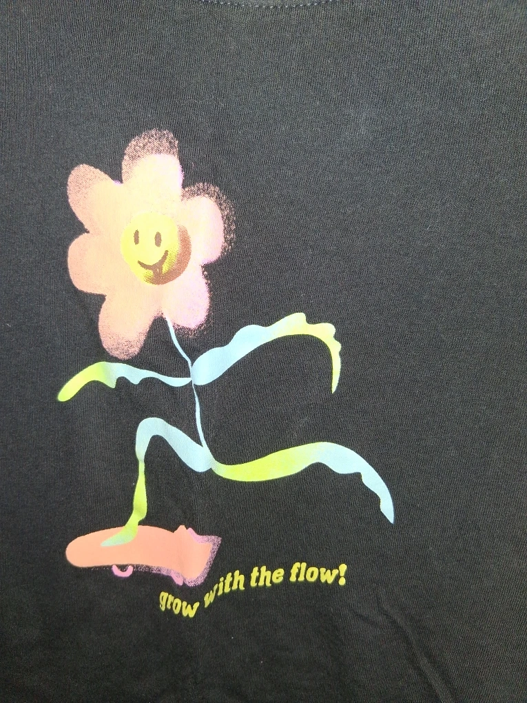Selling a Gap Kids black t-shirt in size XXL (14-16). It's made of organically grown cotton and features a cute flower design! Perfect for your little one.