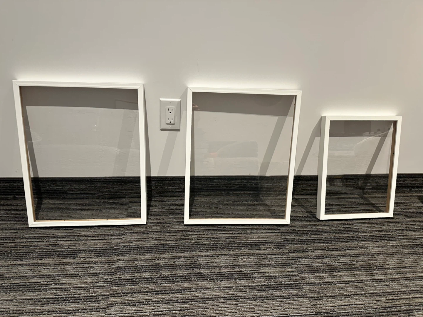 Selling a set of picture frames in various sizes. The frames are white and in great condition. The sizes are approximately 17x21 inches - 2 pcs and 13x17 inches. Perfect for displaying your favourite photos or artwork!