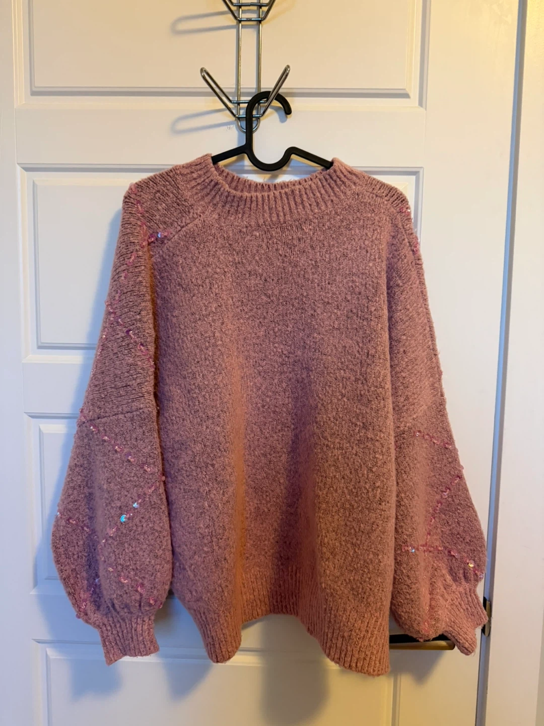 Selling a cute pink sweater with sparkly details! It's a size small and has a cozy, oversized fit. Perfect for adding a bit of sparkle to your wardrobe!