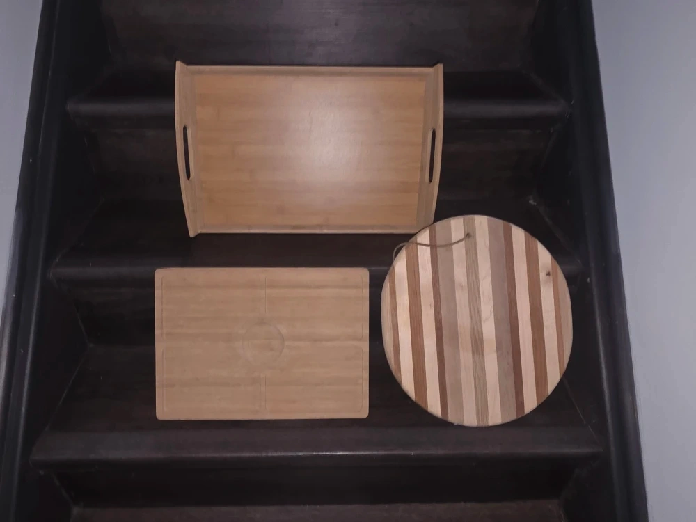 A set of wood cutting boards and a serving tray, perfect for kitchen use or entertaining. They're in great shape and ready for a new home!