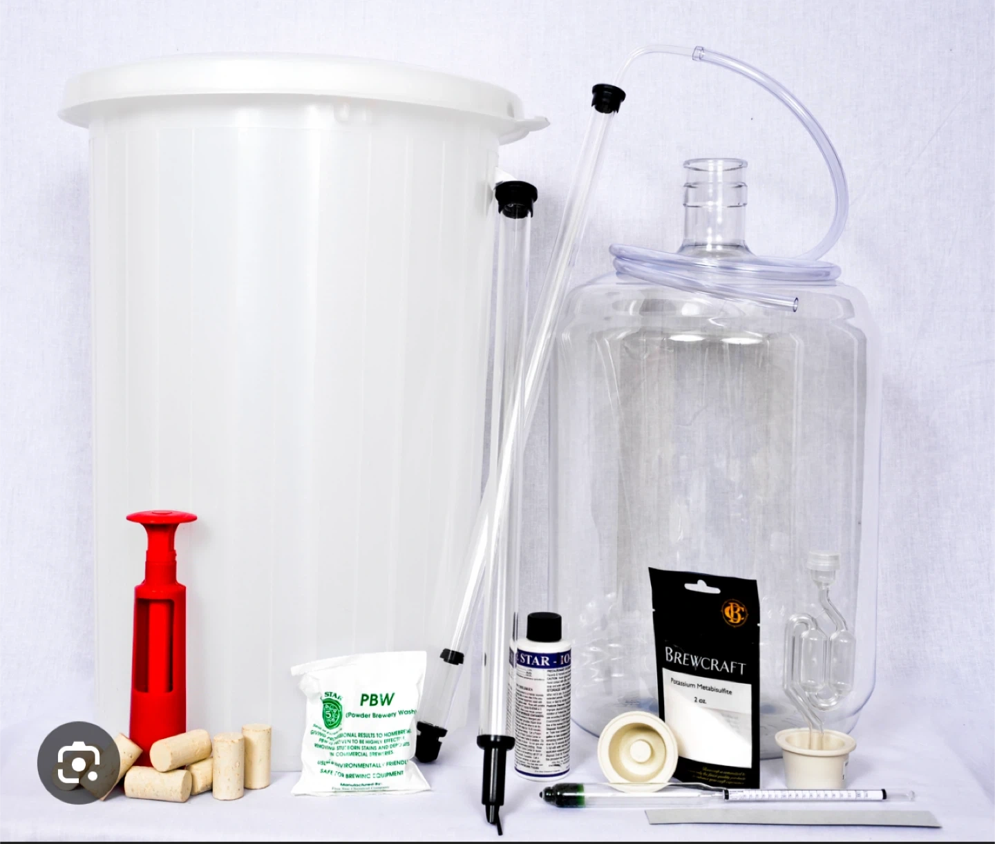 The picture is a generic picture ..I am Selling a large home brewing set up . Including 3 glass carboys ,2 plastic secondaries, stand up corker, drying rack, a Box full of labels corks gradualted cylinders,bottle washer brush,hydrometers.syphoning tubes and bottle filler everything you need and more just no kit or bottles . $250.00 for everything