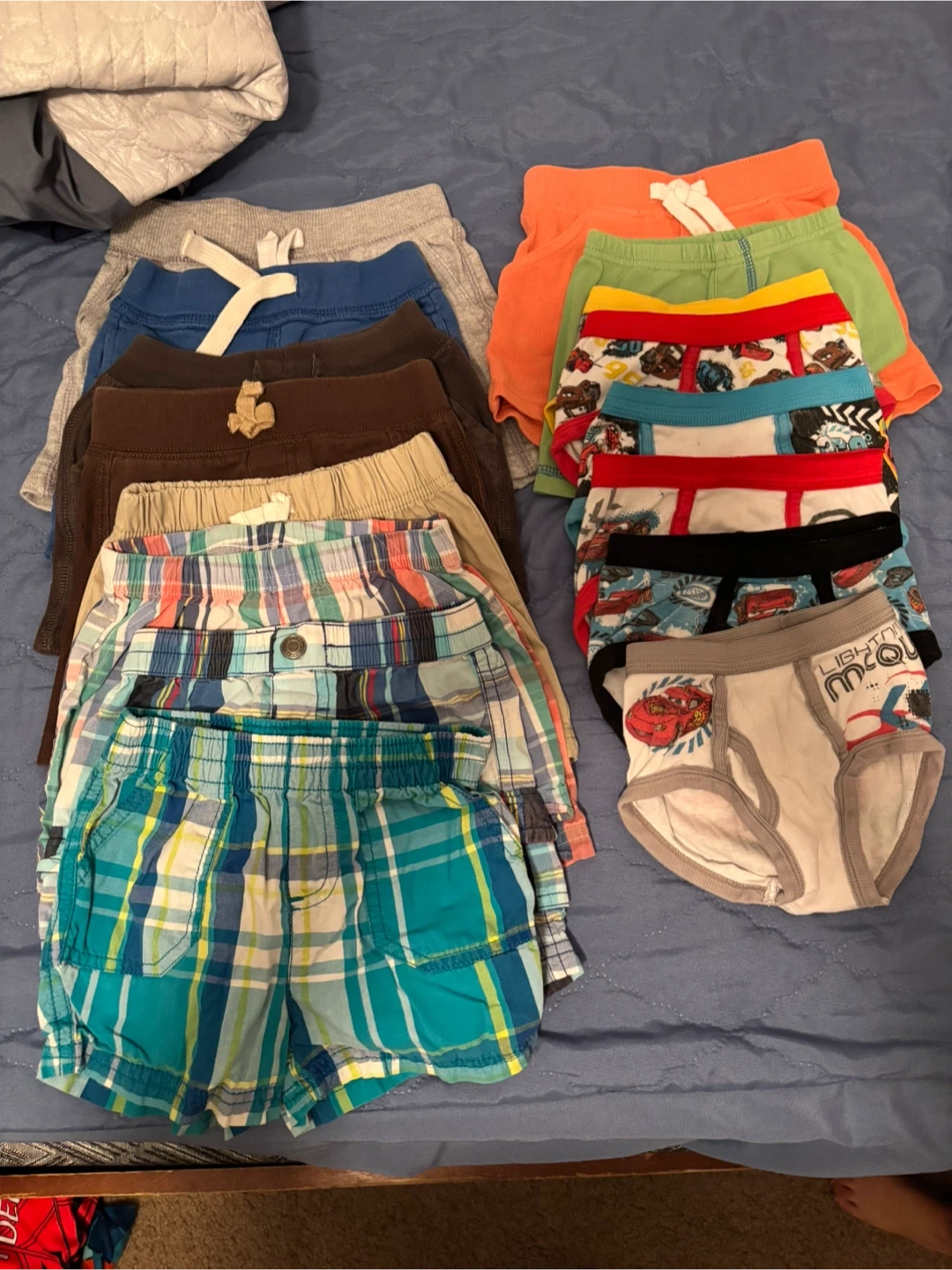Selling a mixed lot of boys' clothing! Includes a variety of items like Nike shirts, Spider-Man rash guard sets, shorts, underwear, and jeans. Great for stocking up on essentials for your little one. Under 4 years old wear boy all of them for$15