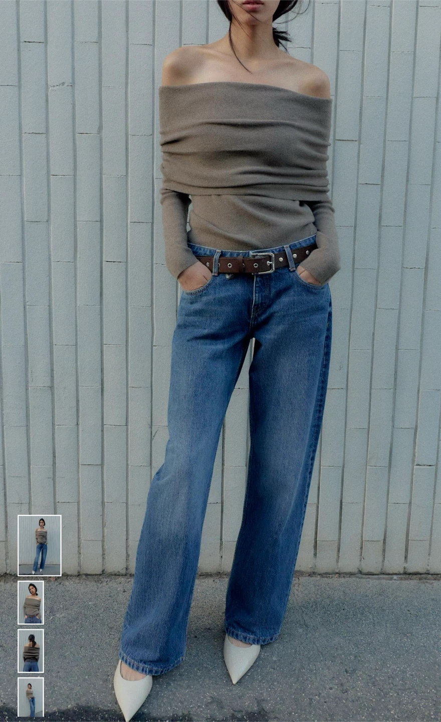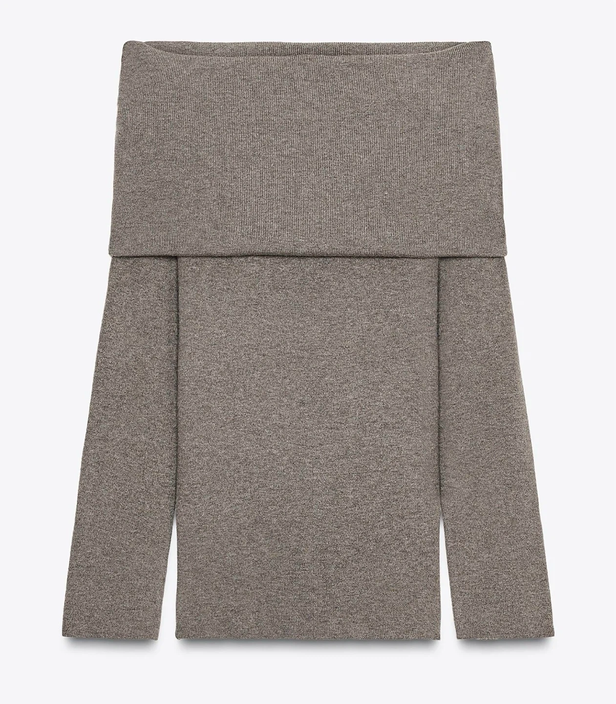 Selling a Zara knit off-the-shoulder top in a neutral colour! This top is perfect for a stylish, casual look.