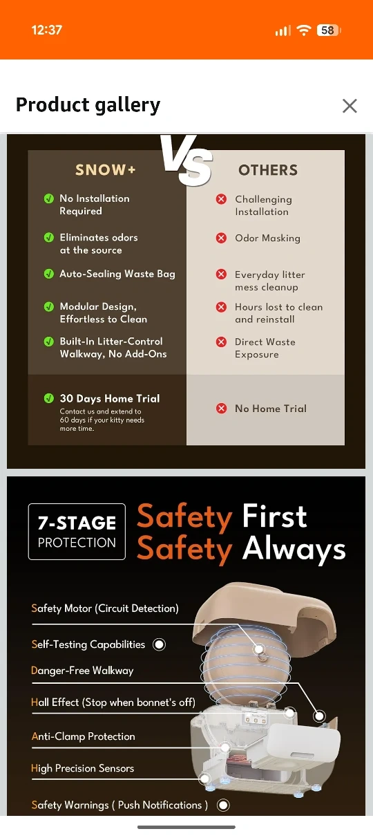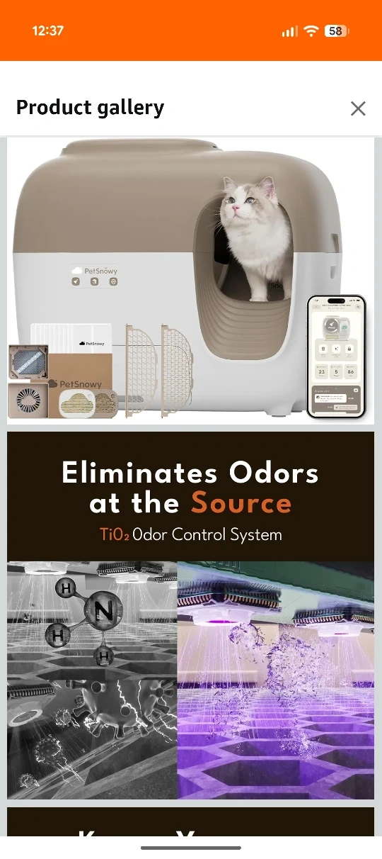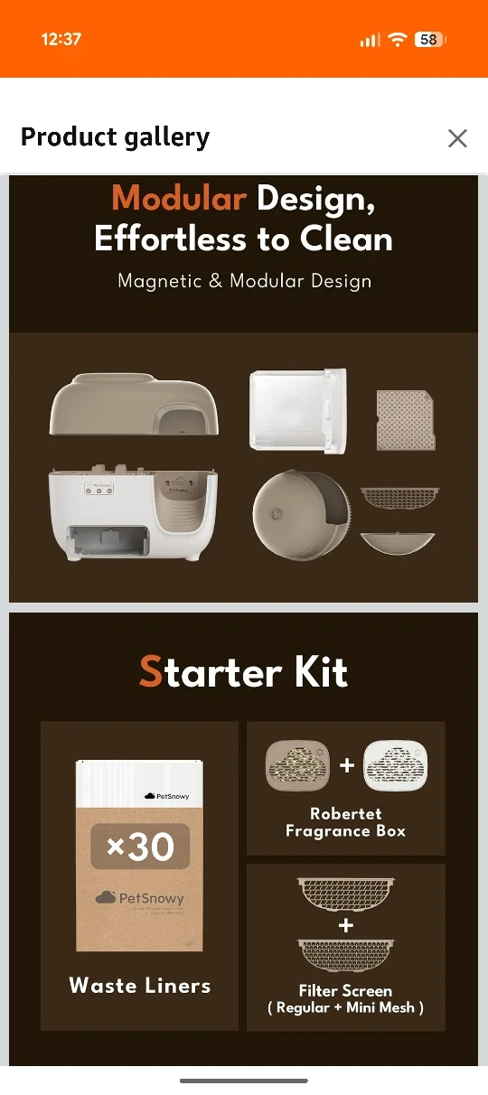 Keep your floors spotless with the PetSnowy cat litter box! It features a built-in litter-control walkway and an auto-sealing waste bag for quick, clean, and effortless disposal. The modular design makes it easy to clean, and it eliminates odours at the source with its TiO2 Odor Control System.