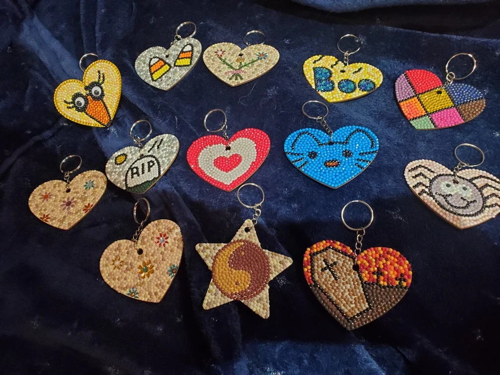 Selling handmade rhinestone heart and star keychains. Each one is unique and sparkly! Will sell individually for $3.00 each, or I can do special orders fior any occasion and any amount.