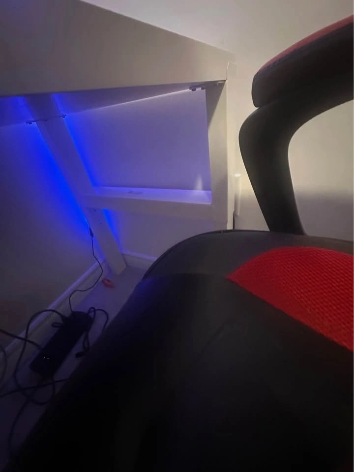 There’s a little dent as shown in the video. This desk is from IKEA and is height adjustable. In the pictures, it’s at the highest setting. Let me know if you're interested!