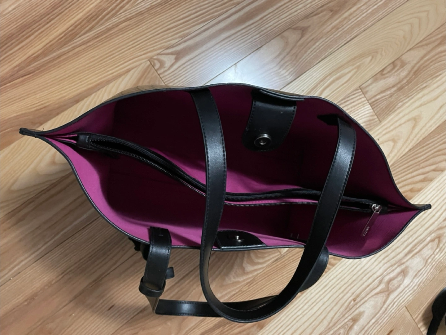 Selling a stylish Arezzo tote bag in black! It features a unique crocodile-like texture and a vibrant purple interior. Perfect for carrying your essentials in style