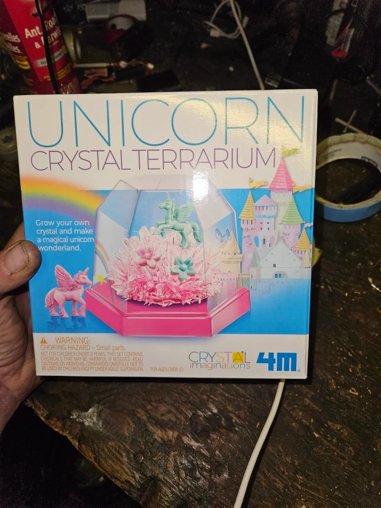 I'm selling a brand new Unicorn Crystal Terrarium kit! Grow your own crystal and make a magical unicorn wonderland. It's suitable for ages over 10 and contains small parts, so please be careful