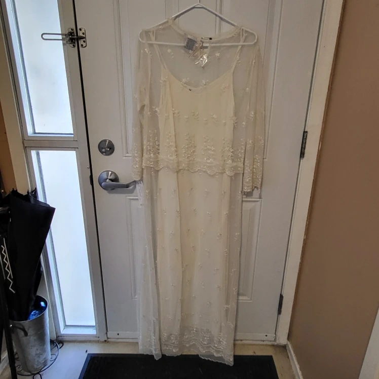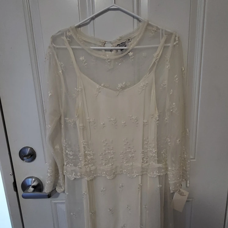 This is a beautiful Papillon dress in a size M. It's a lovely cream colour and features delicate floral embroidery. Perfect for a special occasion or a night out or can be used as a Wedding dress!