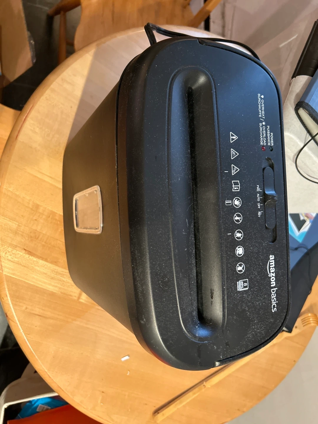 Selling an Amazon Basics 8-sheet cross-cut shredder. It features forward, auto, off, and reverse functions. Perfect for home or office use to keep your documents secure!