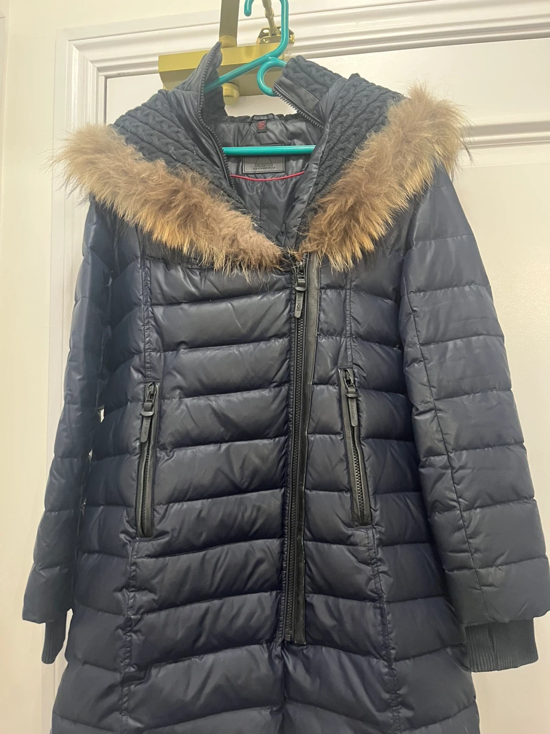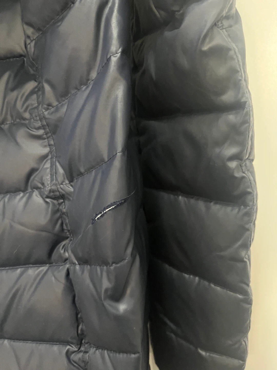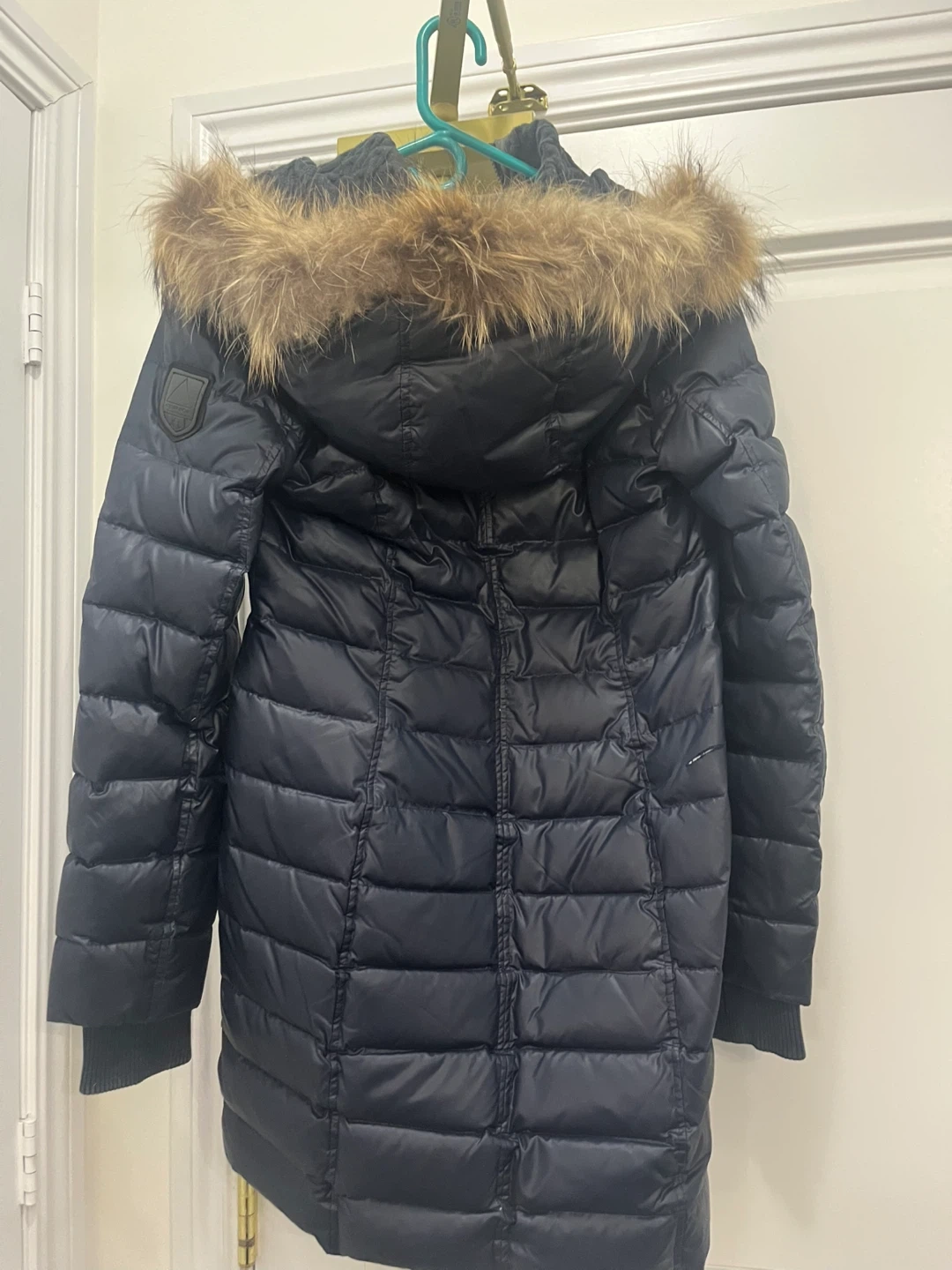 Selling a stylish Atelier Noir Division Rudsak down parka. It's a beautiful navy colour, perfect for staying warm this winter. There is a small tear on the side.