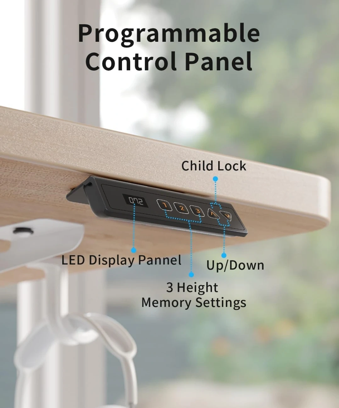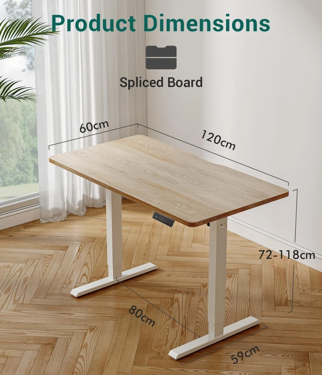 - Dimensions: 120cm x 60cm tabletop, adjustable height from 72-118cm