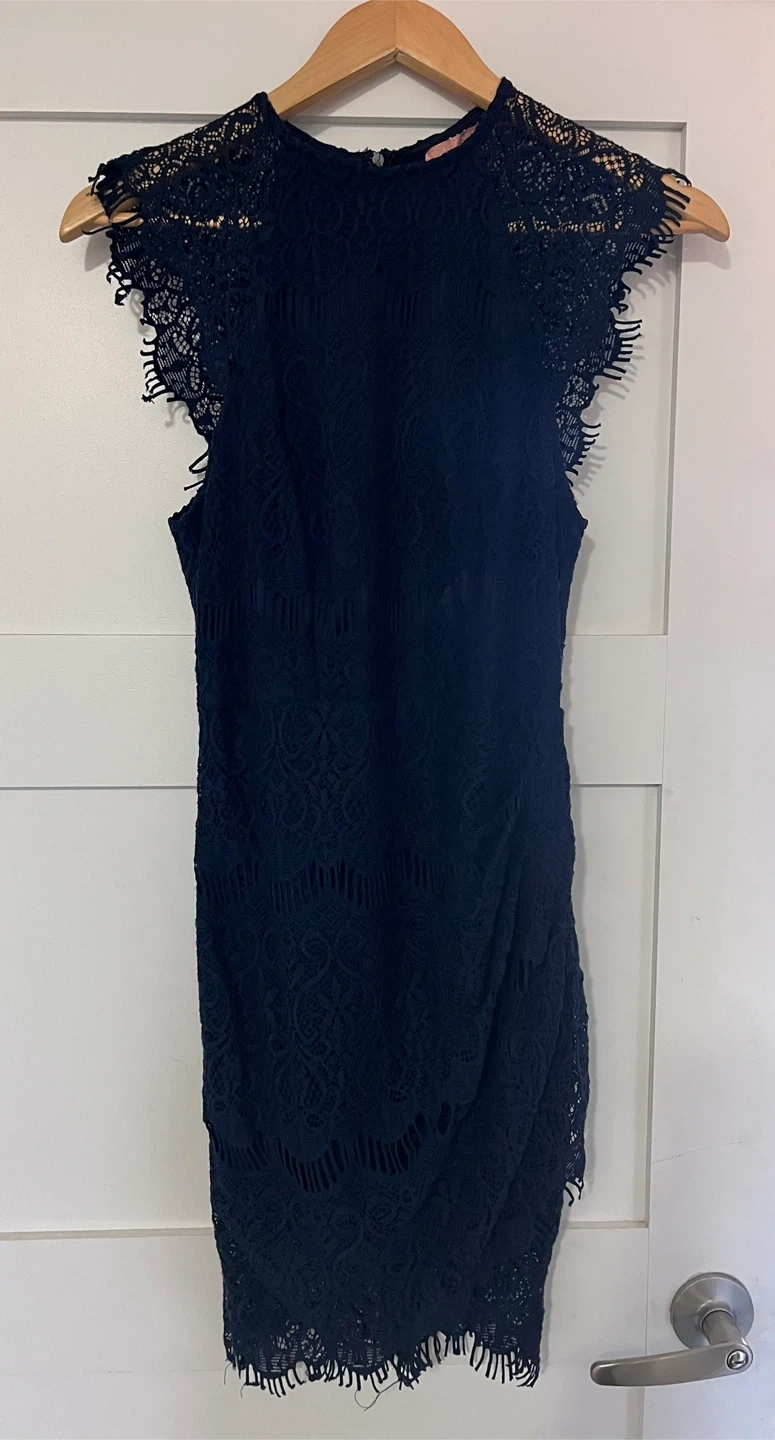 Selling a beautiful special occasion navy blue lace dress. It's a size 10 for a youth girl. It’s in great condition. Worn once.