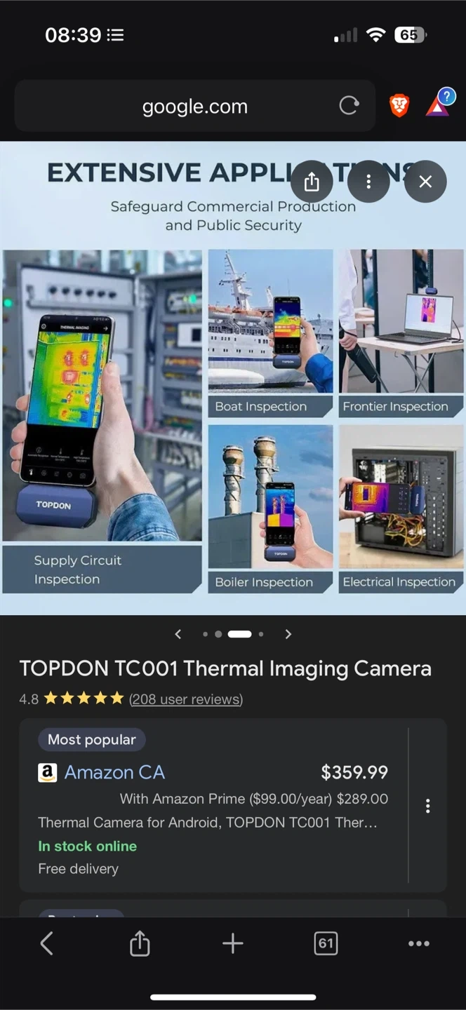 Looking to sell a TOPDON TC001 Thermal Imaging Camera! This thermal camera is compatible with all phones, tablets, and laptops, connecting via USB Type-C. It's lightweight, weighing only 1 oz (30g), and is drop-resistant up to 39.4 inches (1m). Originally bought for $359.99 +hst. Amazing accuracy.