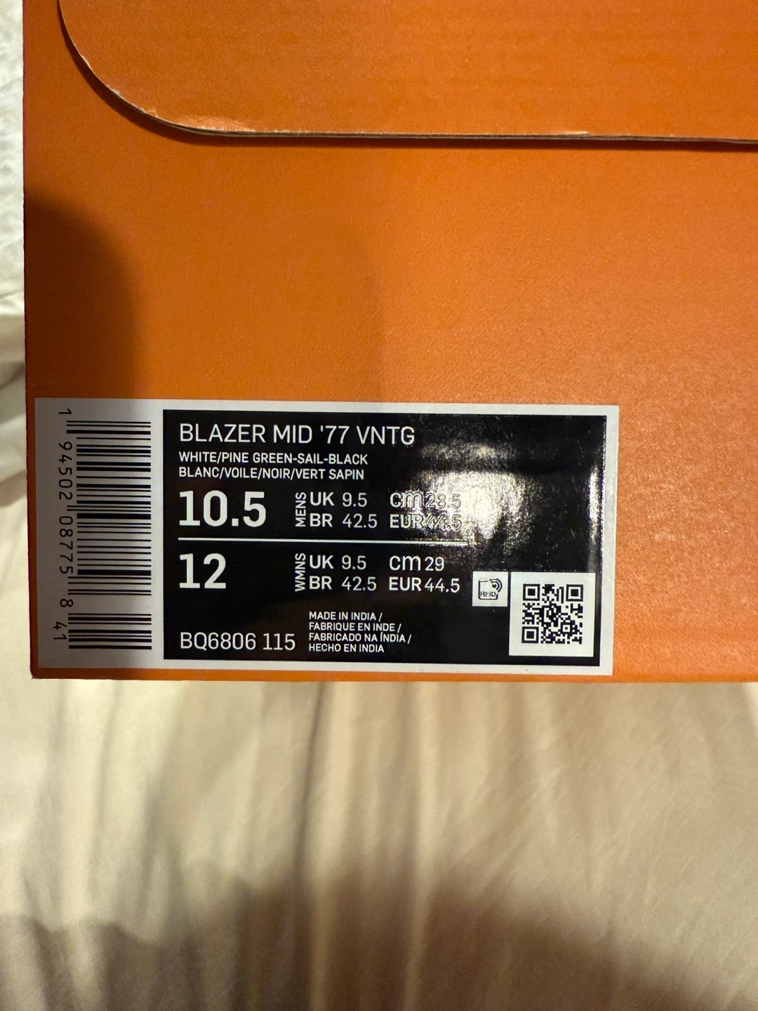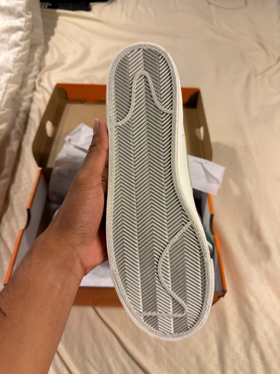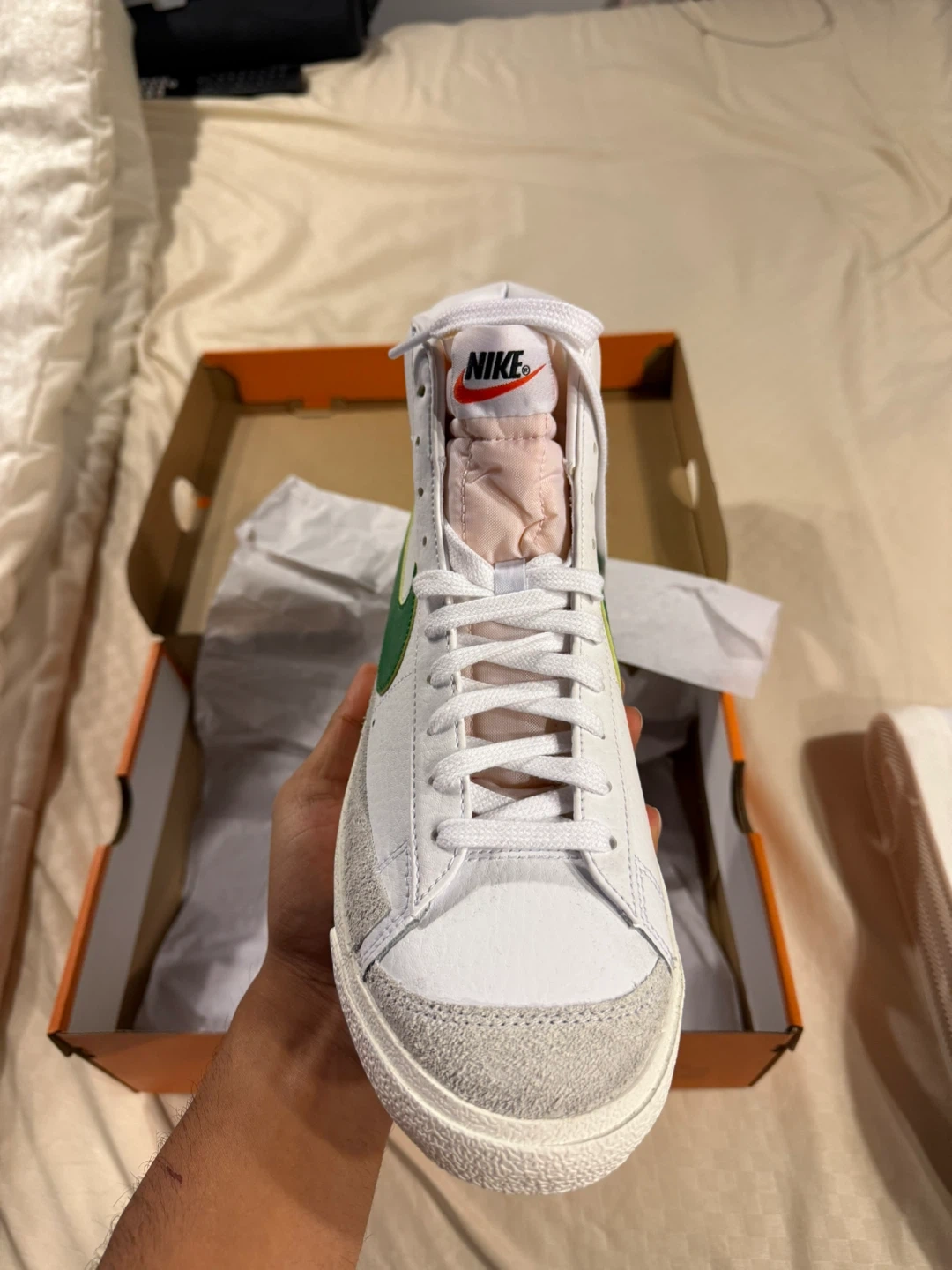 Selling a pair of Nike Blazer Mid '77 Vintage sneakers in white and green. They come with the original box!