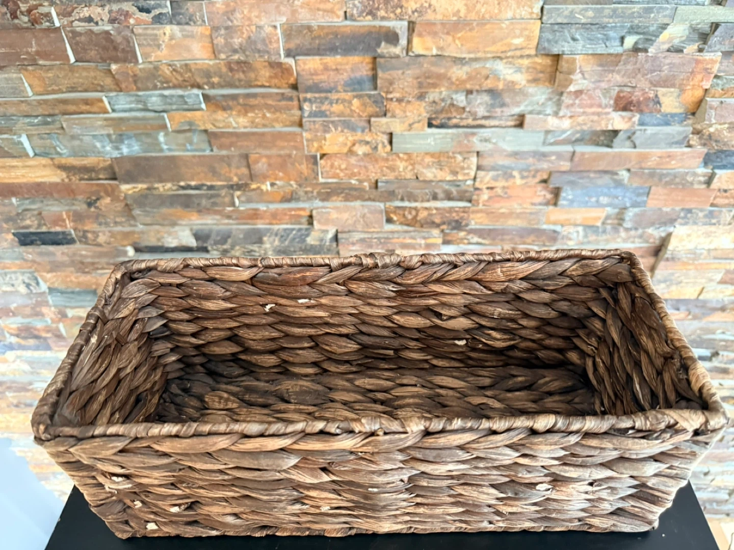 A lovely woven storage basket, perfect for organizing your home. It's in great shape and ready to use for anything you need to store!