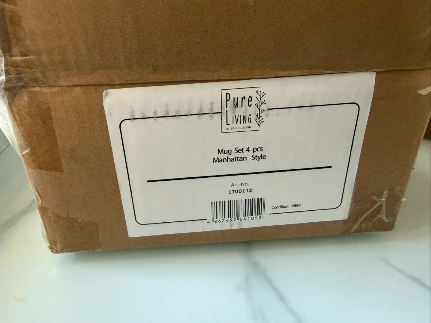 Selling a brand new Pure Living mug set! This set includes 4 mugs in the Manhattan Style. The box indicates the condition is new. Never used them.