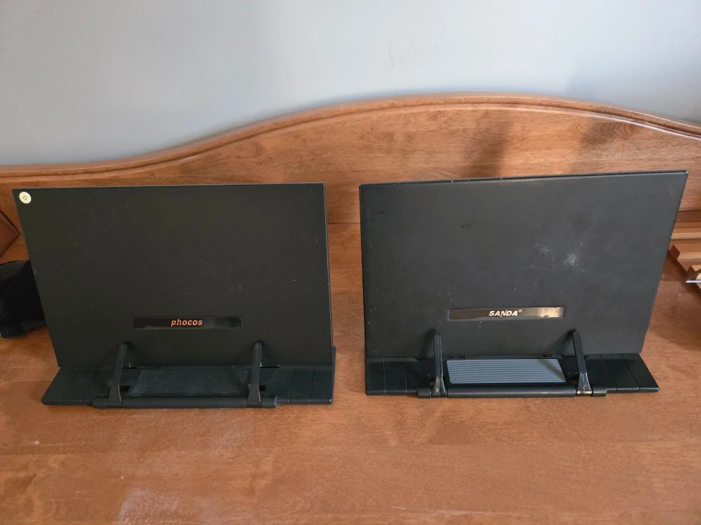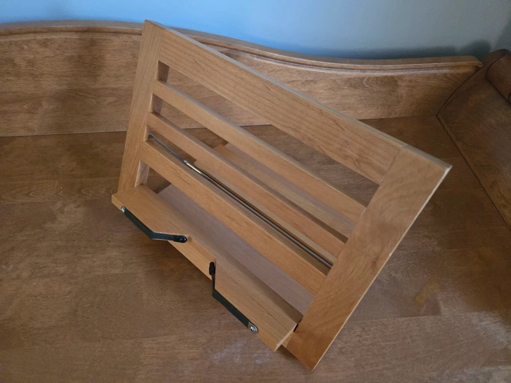 Selling a couple of book stands! One is a light wood colour and branded Phocos. The other is black and branded SANDA. They are both in great condition and would be perfect for holding your books or tablets while you read or work