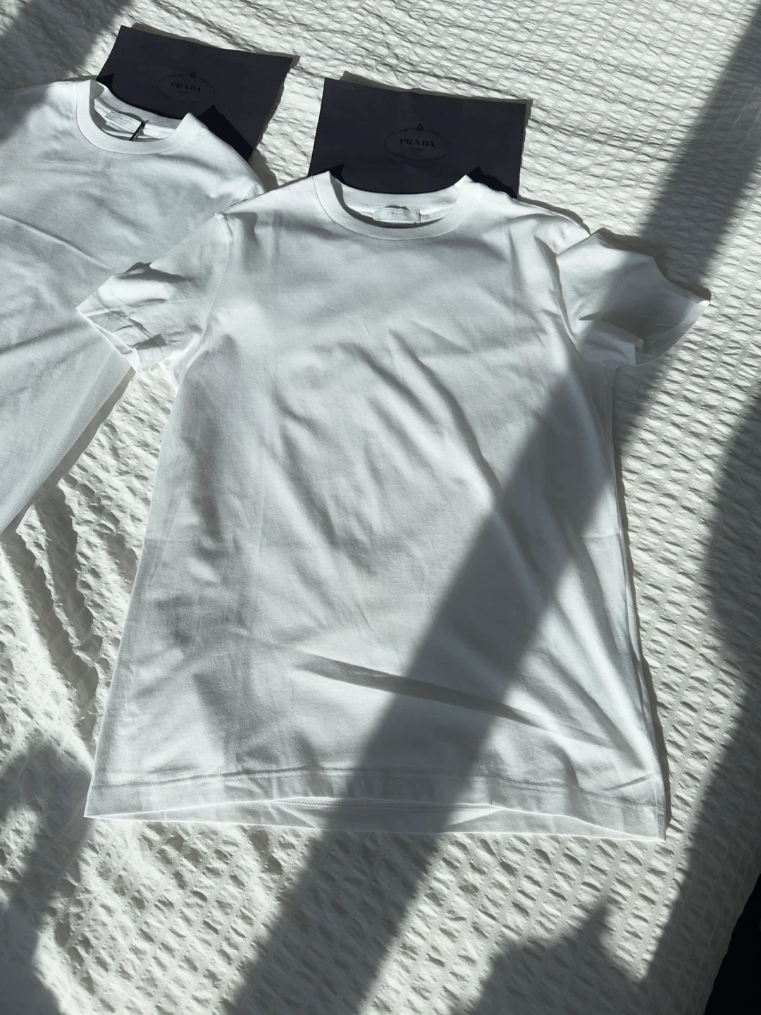 Selling a pack of two Prada white t-shirts. They are never worn and in perfect condition.