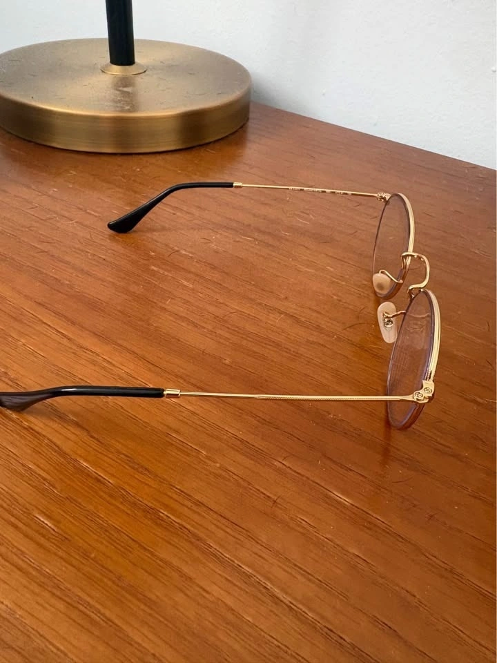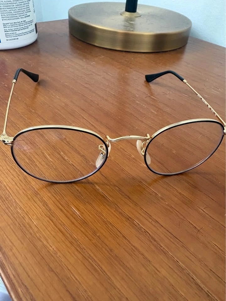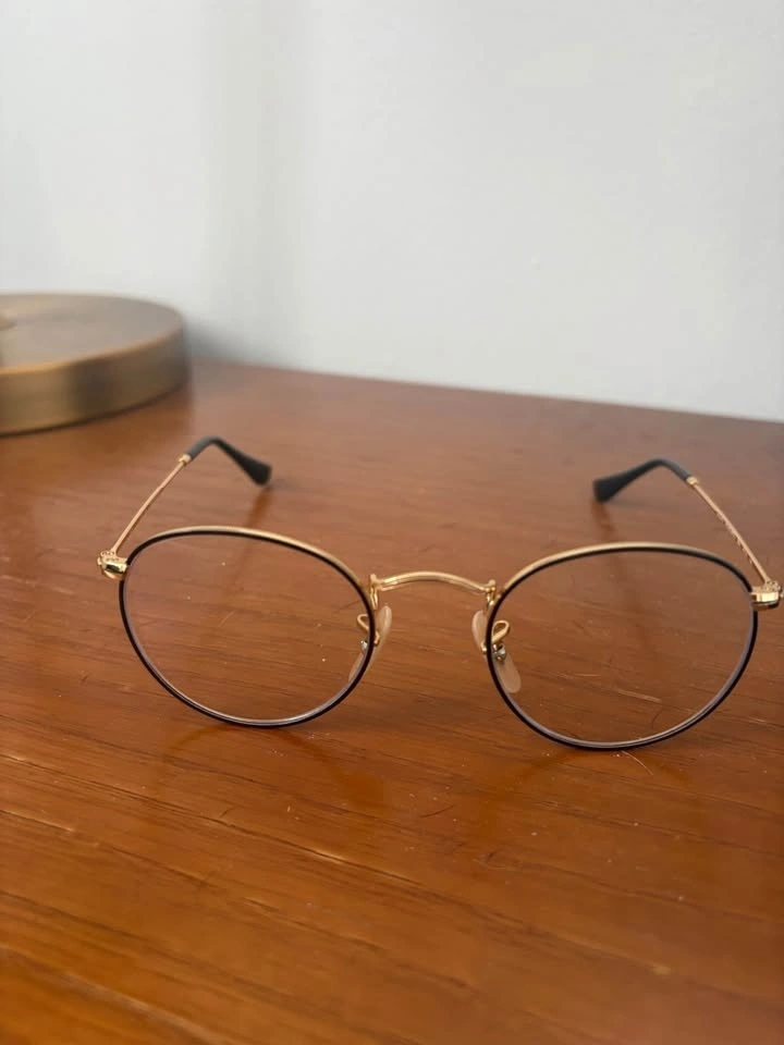Selling a pair of Ray-Ban Round Metal eyeglasses. They feature a black and gold frame. These are in great condition and ready for a new home.